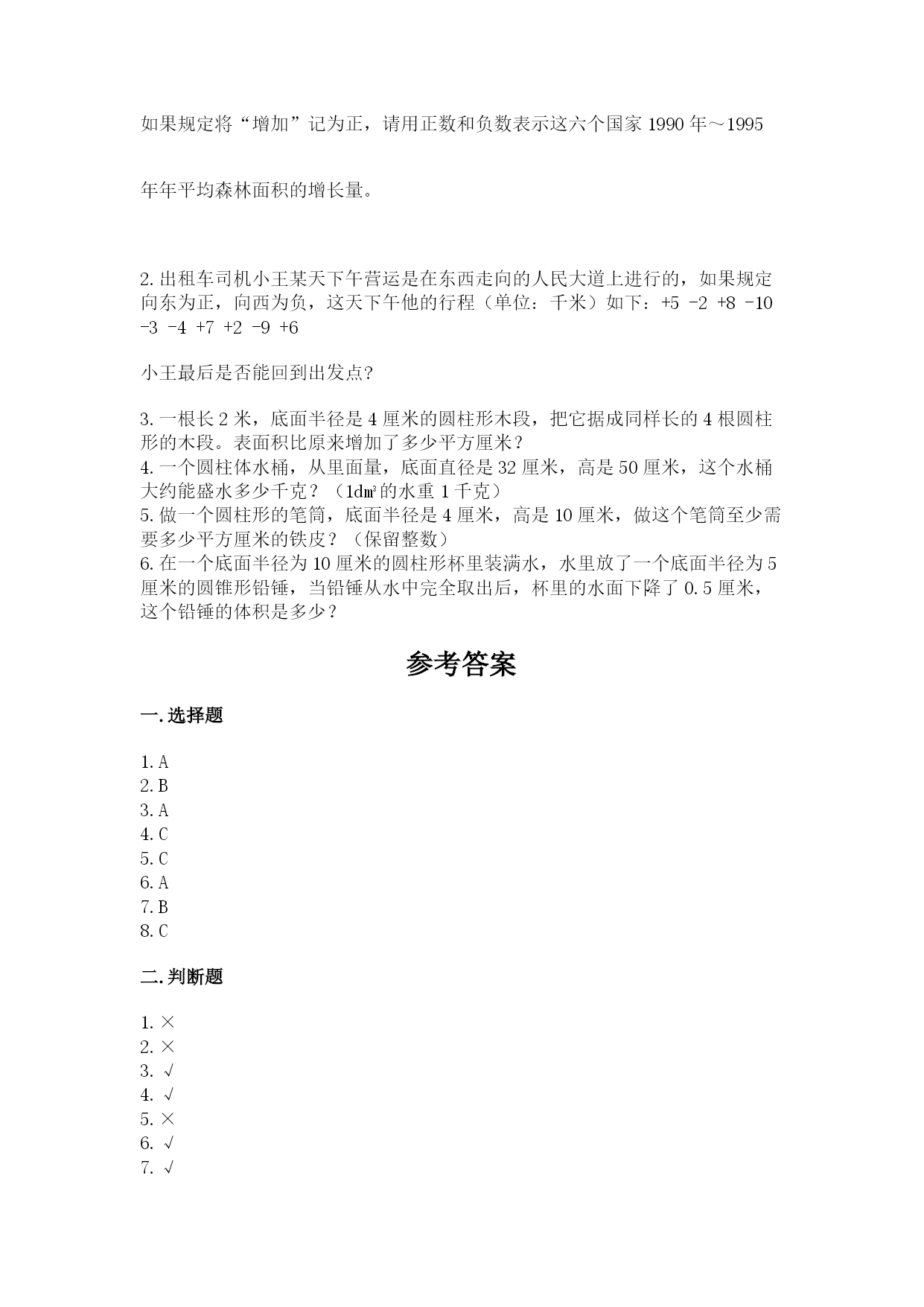 小升初数学期末测试卷一.选择题(共8题,共16分)1.如果把10米记作0米,11米记作+1米,那么下面说法错误的是()。A.7米计作-7米B.+8米表示实际18米C.4米计作-6米2.如果向东走记作为正,那么小明向西走了10米,可以记作()。A.-10米B.10米C.0米3.圆锥的体积不变,它的底面积和高()。A.成正比例B.成反比例C.不成比例4.将一个周长12厘米的正方形变换成面积为36平方厘米的正方形,是按()的比放大的。A.2:1B.3:1C.4:15.关于“0”的说法正确的是()。A.0是正数B