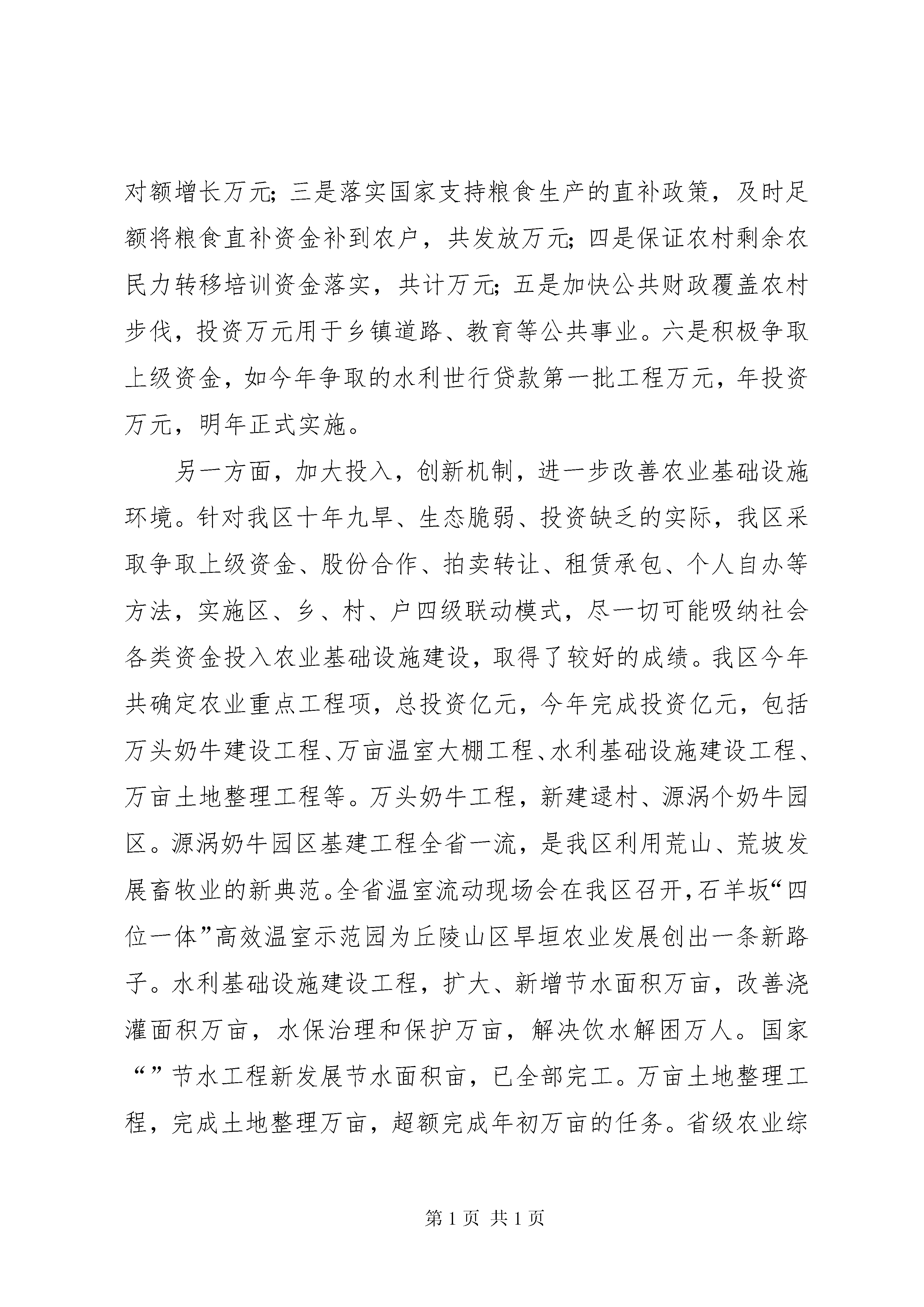 第PAGE\*Arabic\*MERGEFORMAT16页共NUMPAGES\*MERGEFORMAT16页关于对区人大常委会“三农”工作视察意见的整改报告区人大常委会:根据区人大常委会调研视察意见书《关于对全区“三农”工作的视察意见》要求,区政府对《意见》提出的七个共性问题做了认真整改,现将整改情况汇报如下:——针对农业产业结构调整仍然存在不平衡的问题,通过政府推动、示范带动和效益引导,继续引深农业经济结构的战略性调整,开拓农业增效、农民增收空间。农业发展是农民增收的基本着力点,结构调整是农