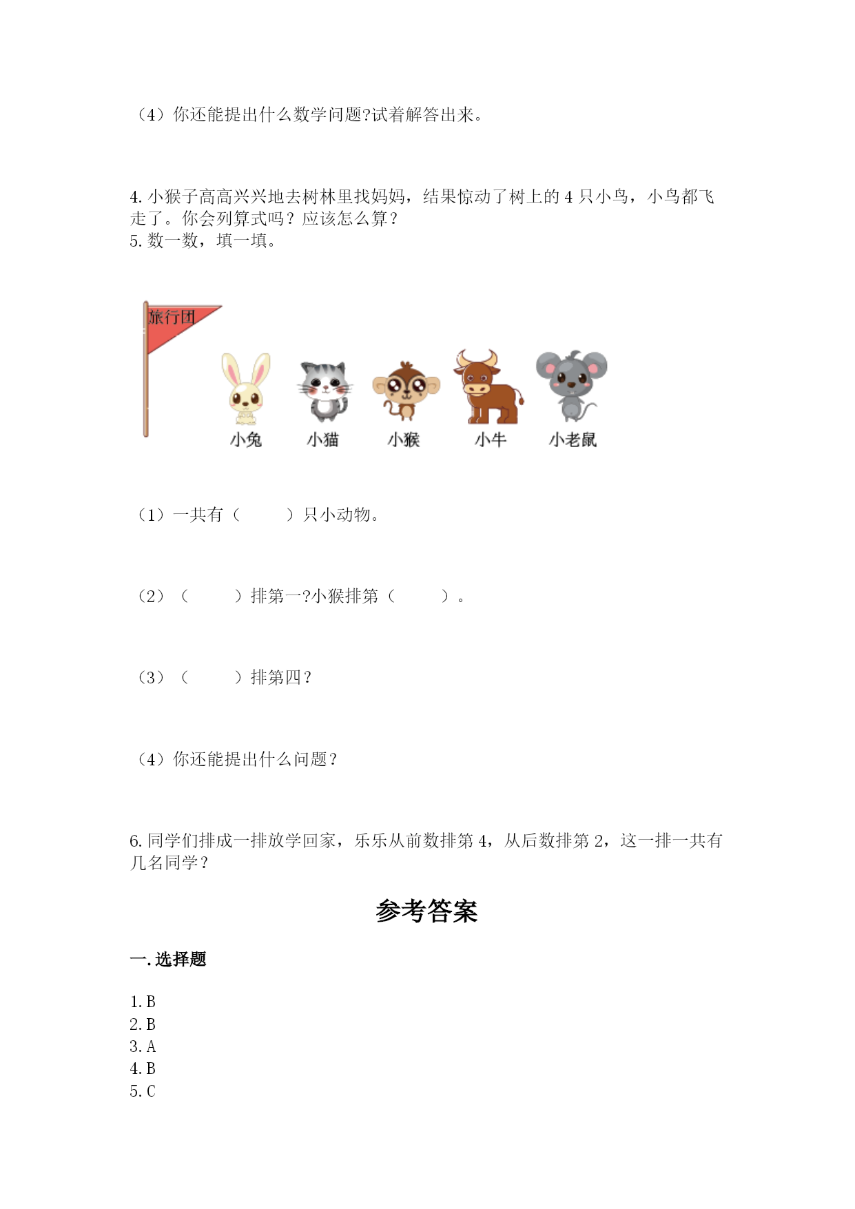 小学数学一年级上册期中测试卷及完整答案(考点梳理).docx