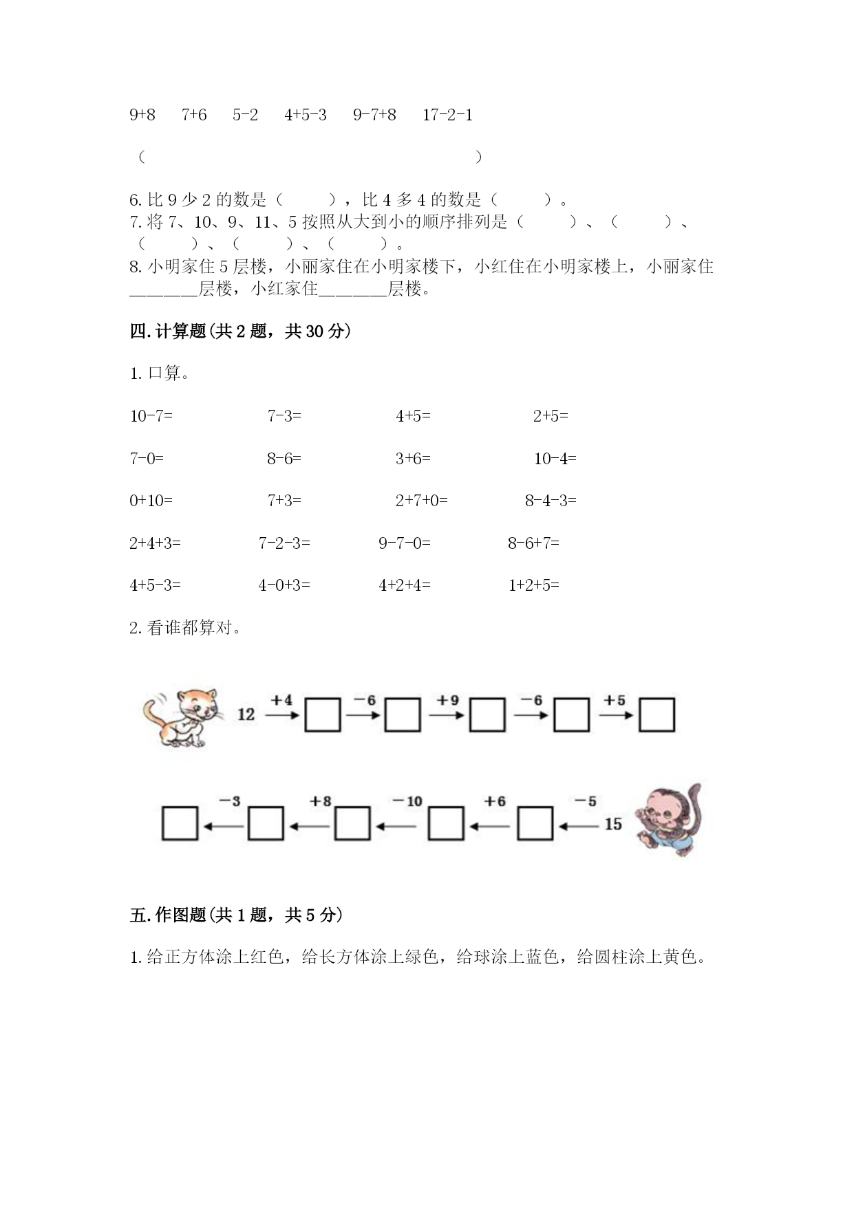 小学数学一年级上册期末测试卷精品(b卷).docx