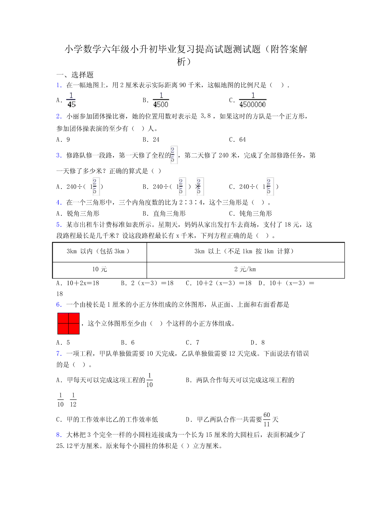 六年级小升初毕业数学复习提高试卷测试题(附答案解析).doc