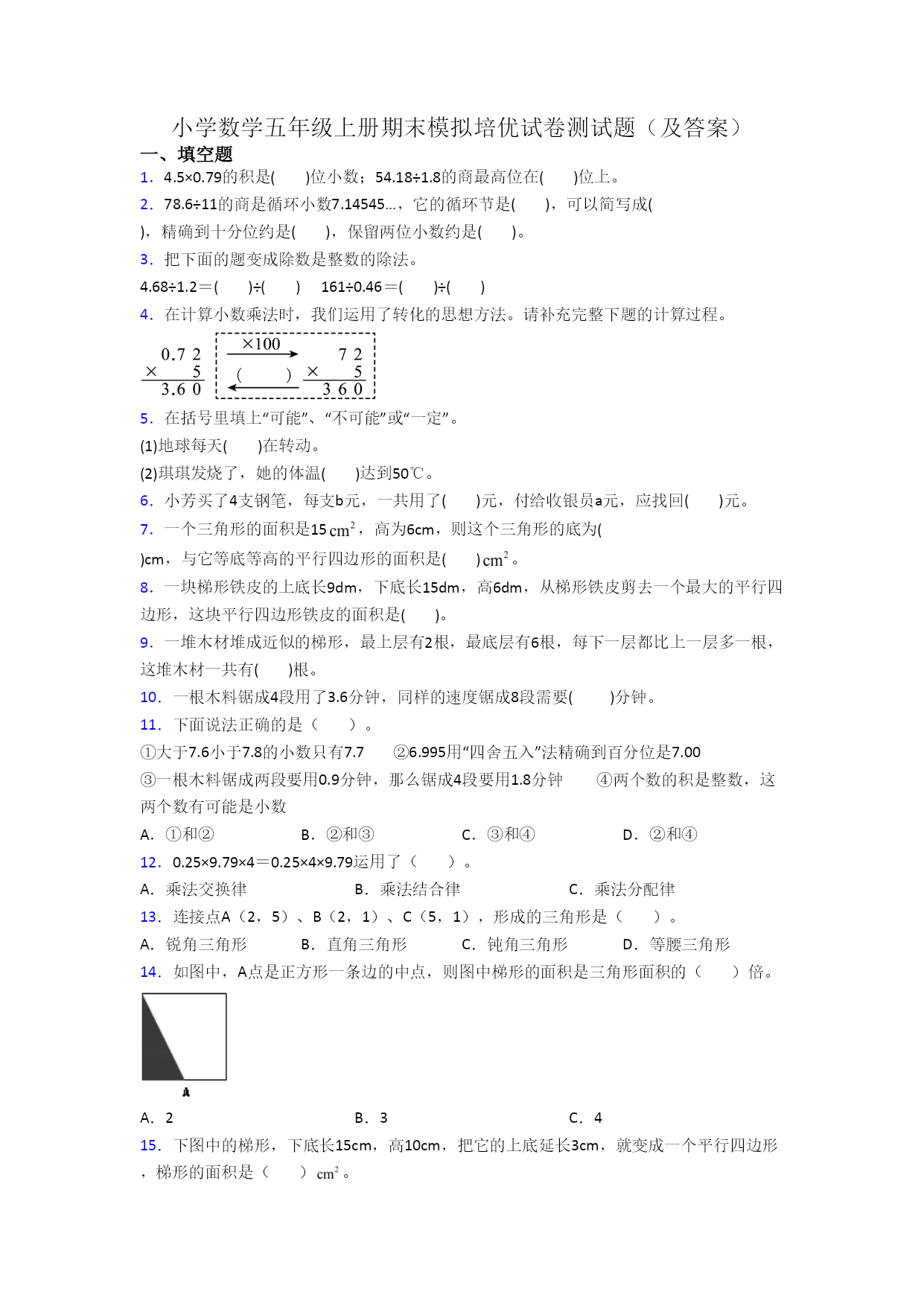 小学数学五年级上册期末模拟培优试卷测试题(及答案).doc