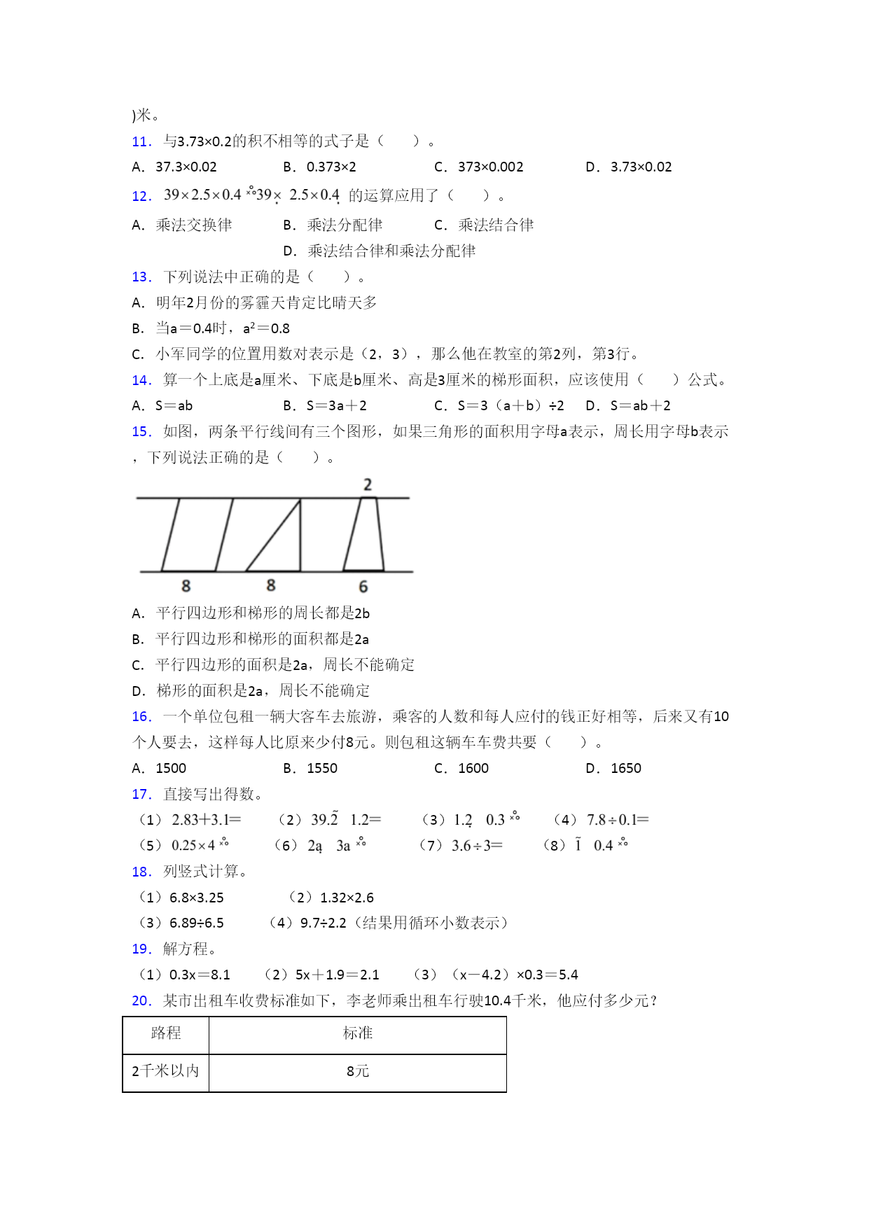 小学五年级上学期期末数学模拟培优试卷测试题.doc