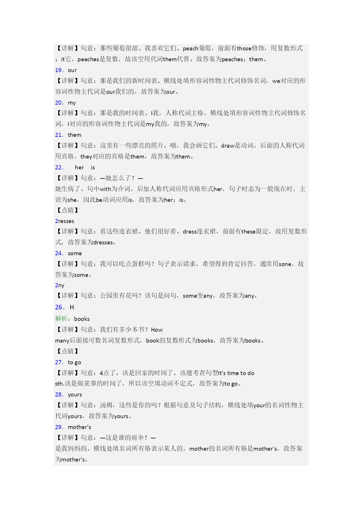 一、单项选择1.—________?()—They’reSam’s.A.WhoseskirtisitB.WhoseglovesaretheyC.Wherearethetrousers2.—Myjeans_______toolong.()—Try_______,please.A.are;thisB.are;theseC.is;these3.Hecan’t________them,hishands________.()A.draws;hurtB.draw;hurtsC.draw;hurt4.—_______d