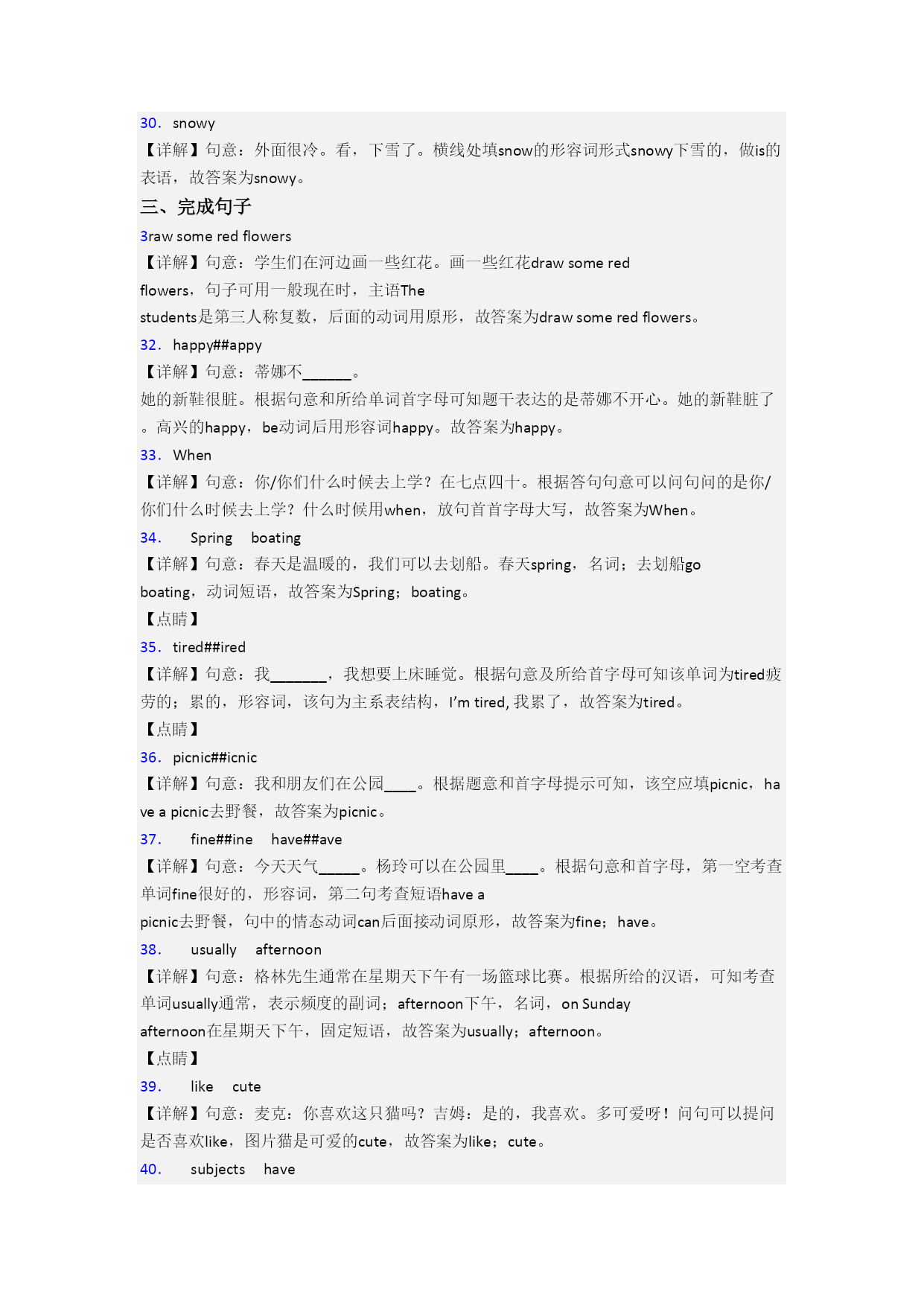 一、单项选择1.Iusuallyplayfootball________four________theafternoon.()A.at;inB.at;onC.in;at2.—I’mvery_______.()—Here’safan_______you.A.cold;forB.hot;forC.cold;to3.Ihavea_______lessontoday.Ican_______well.()A.skating;skateB.skating;skatingC.skate;skatingrawingis_