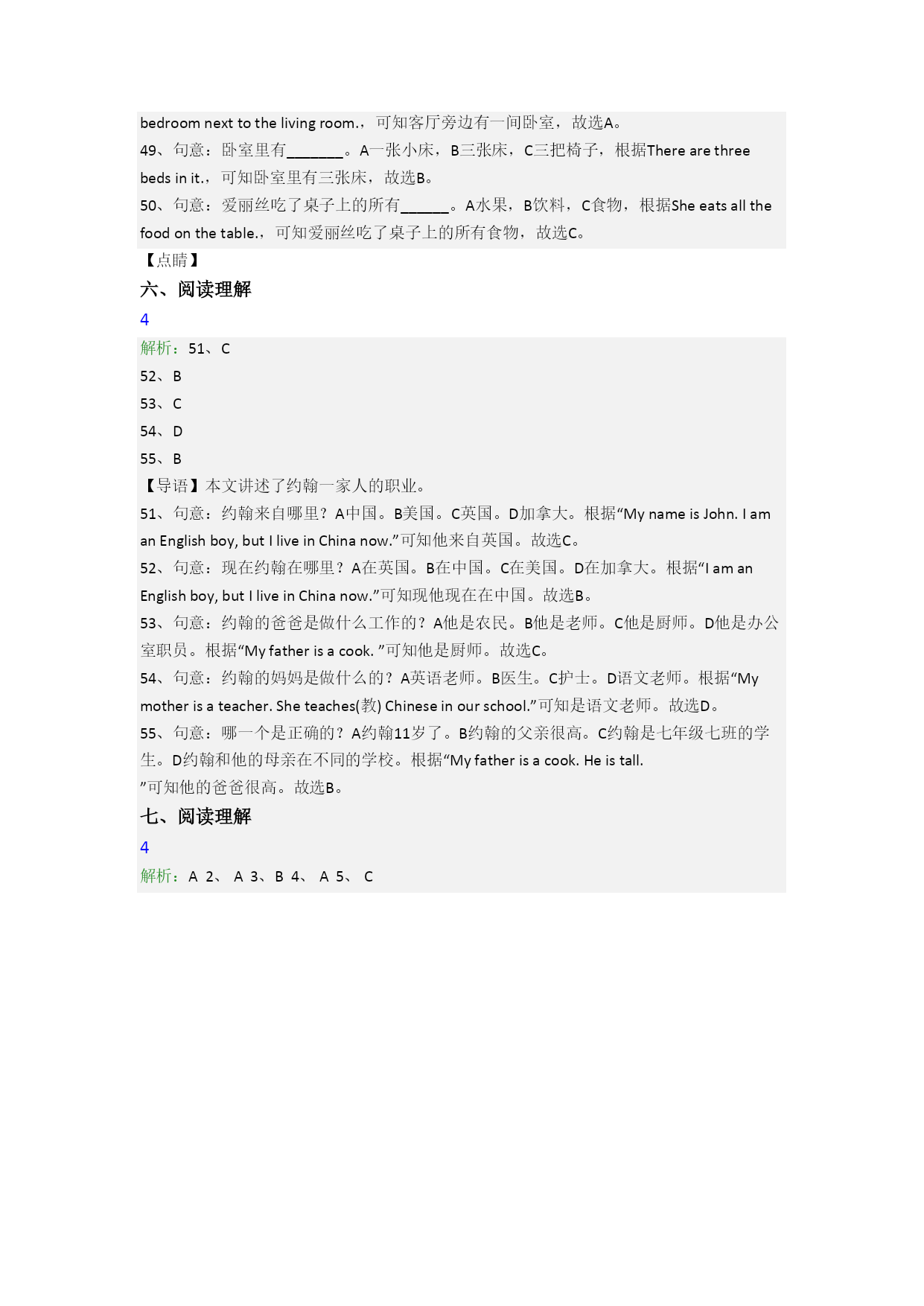 一、单项选择1.—What’sthematter?Areyouill?()—Yes,Ihave______coughand_______headache.A.a;aB.a;/C./;/2.—What______doyoulike?()—IlikePEandEnglish.A.dayB.howmanyC.subjects3.—Howmanyseasonsarethereinayear(年)?()—________.A.TwelveB.SevenC.Four4.I’mthirsty.Iwant________