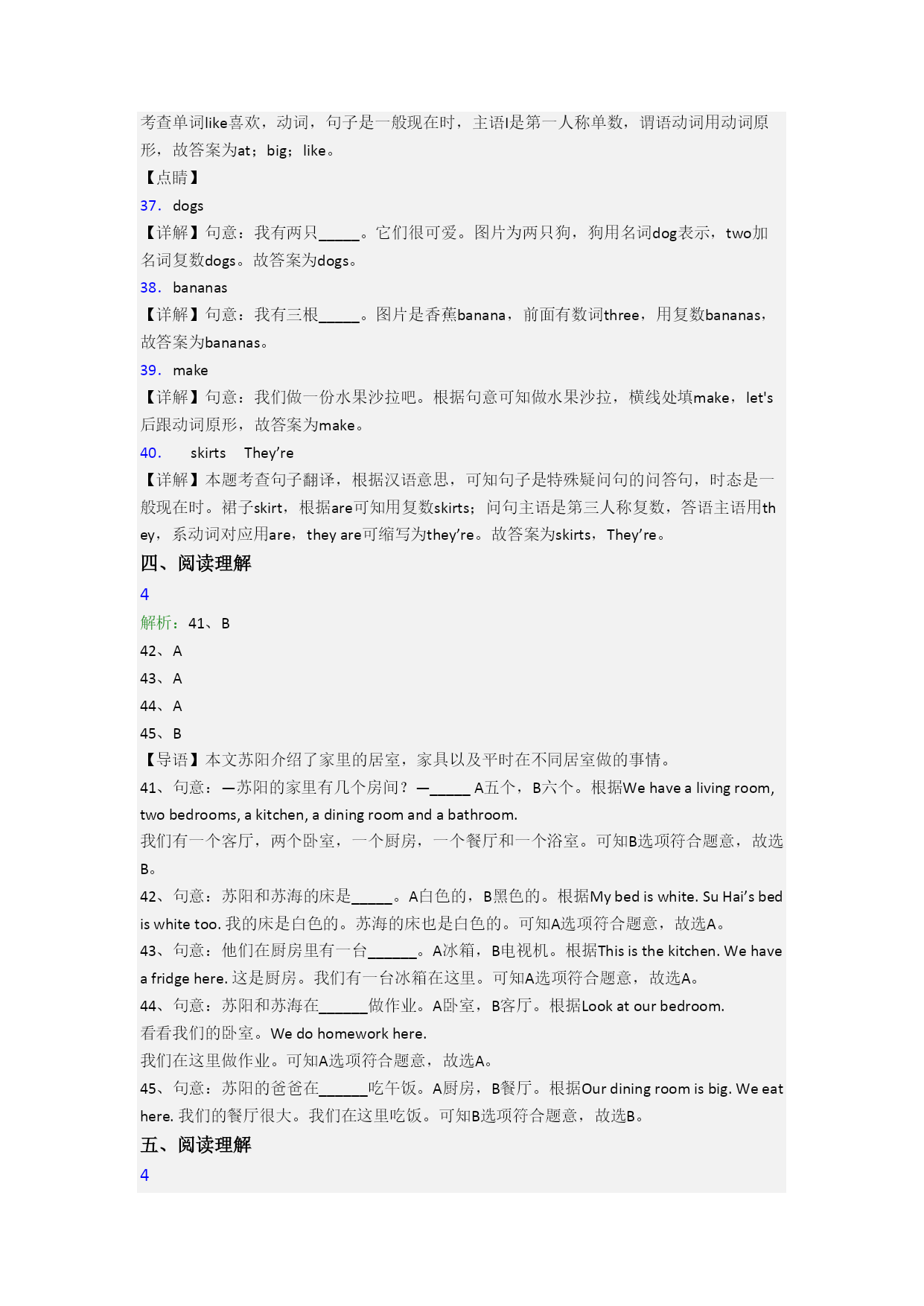一、选择填空1.It’sblackandwhite.Itcangive(给)usmilk.Whatanimalisit?()A.Panda.B.Zebra.C.Cow.2.—Howmany_____doyouhave?()—_____.It’sgreen.A.pears;ThreeB.pears;OnlyoneC.pear;One3.—_______aremywhiteshoes?()—Inthe_______,besidethedesk.A.What;kitchenB.Where;bedroomC.Ho