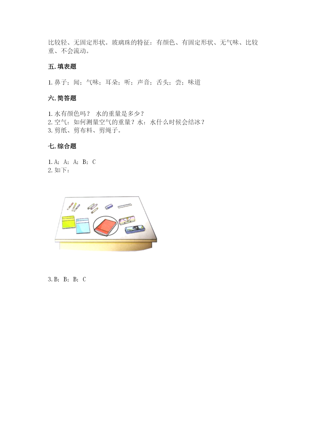 教科版科学一年级下册第一单元《我们周围的物体》测试卷一.选择题(共6题,共12分)1.闻洗发液的气味时,我们应该()。A.把鼻子凑近了闻B.用手扇着闻C.怎么闻都可以2.下列物体中,不能流动的是()。A.牛奶B.水C.木块3.怎样来区分水和醋,最简单的方法()。A.观察B.品尝C.状态4.观察空气。使用塑料袋收集空气主要是因为它()。A.很轻B.密封性好C.很薄5.只有()是看不见、摸不到的。A.水B.小木块C.空气6.下列选项中,没有固定形状的是()。A.洗发液B.木头C.玉米二.填空题(共6题,共26