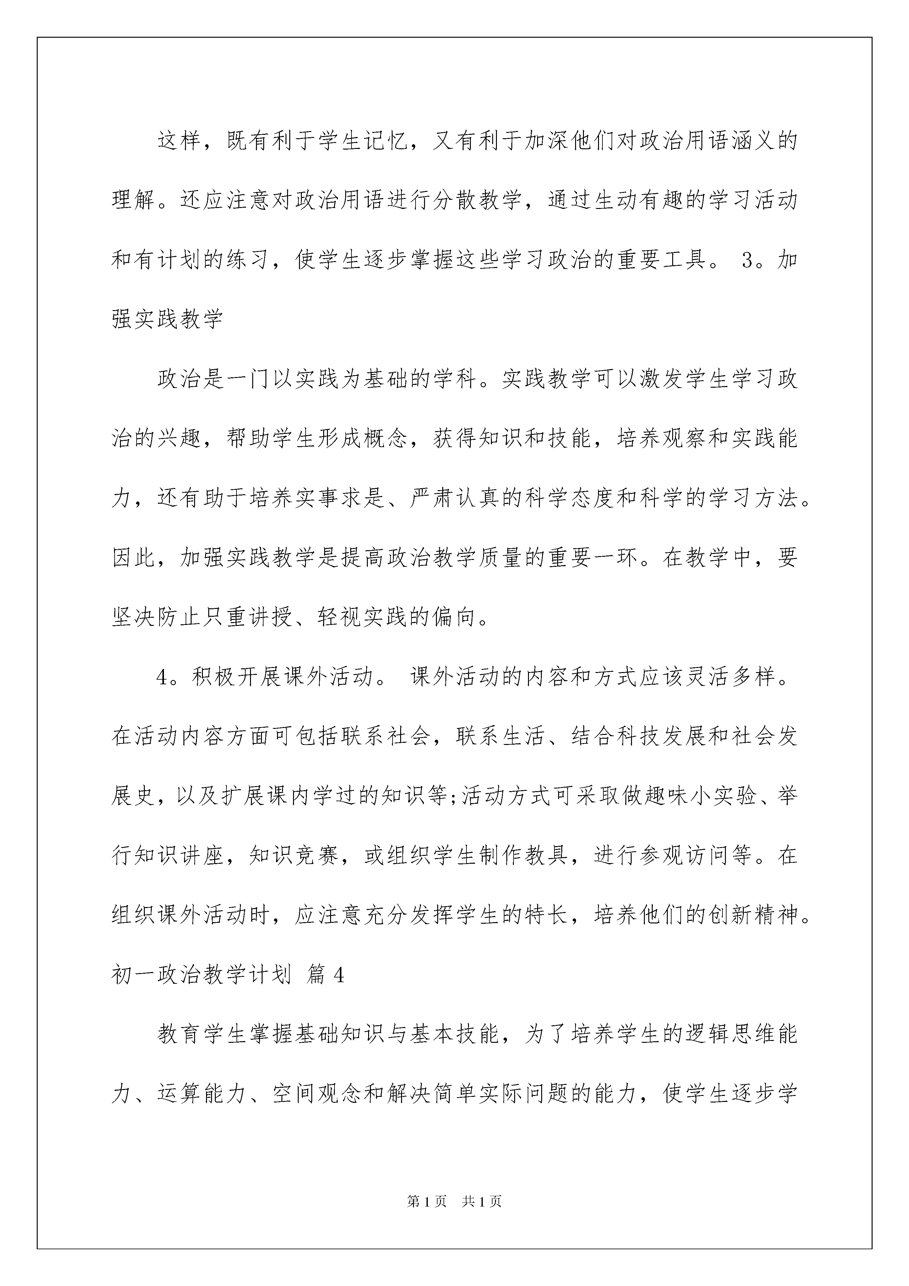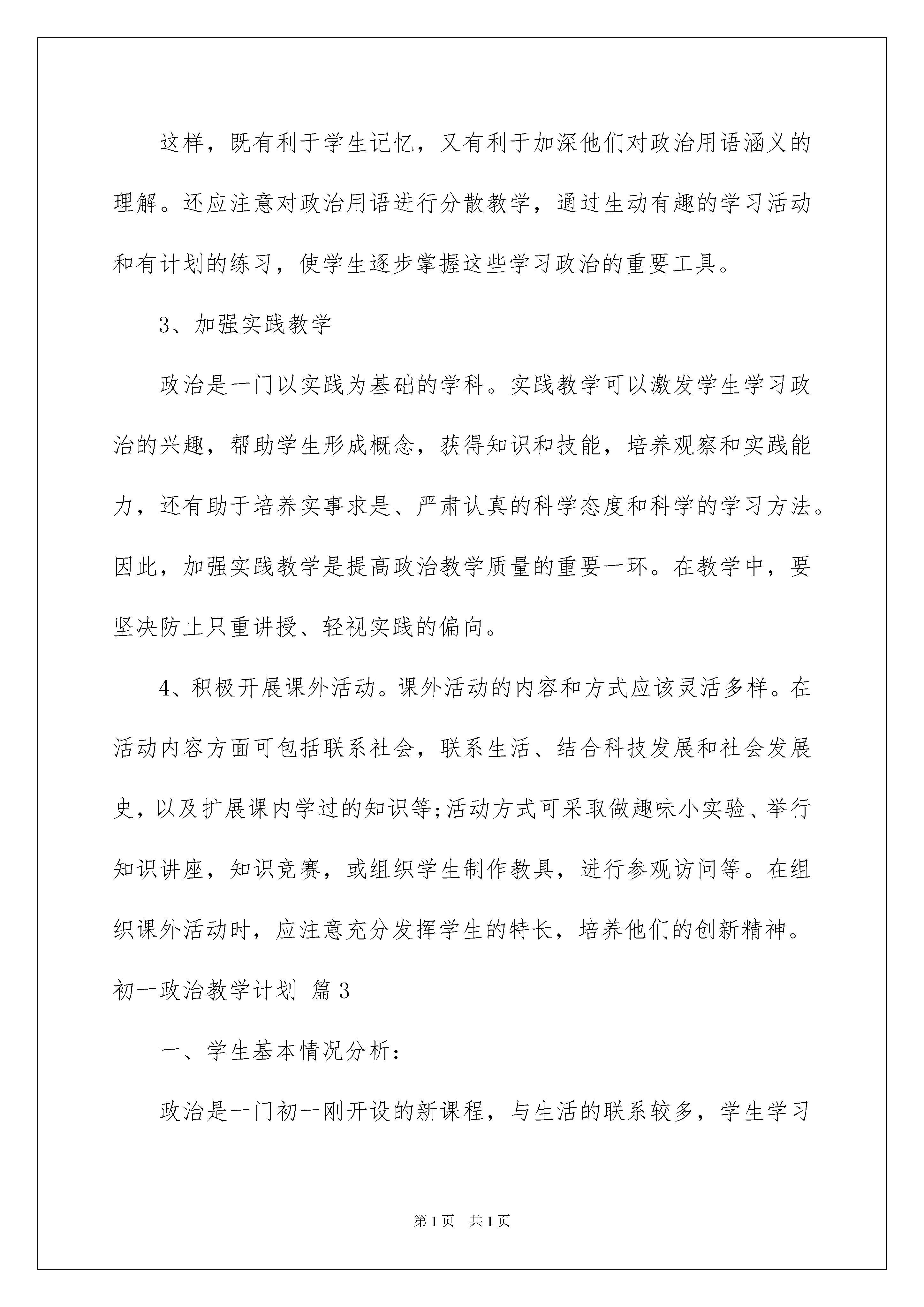 初一政治教学计划锦集七篇.docx