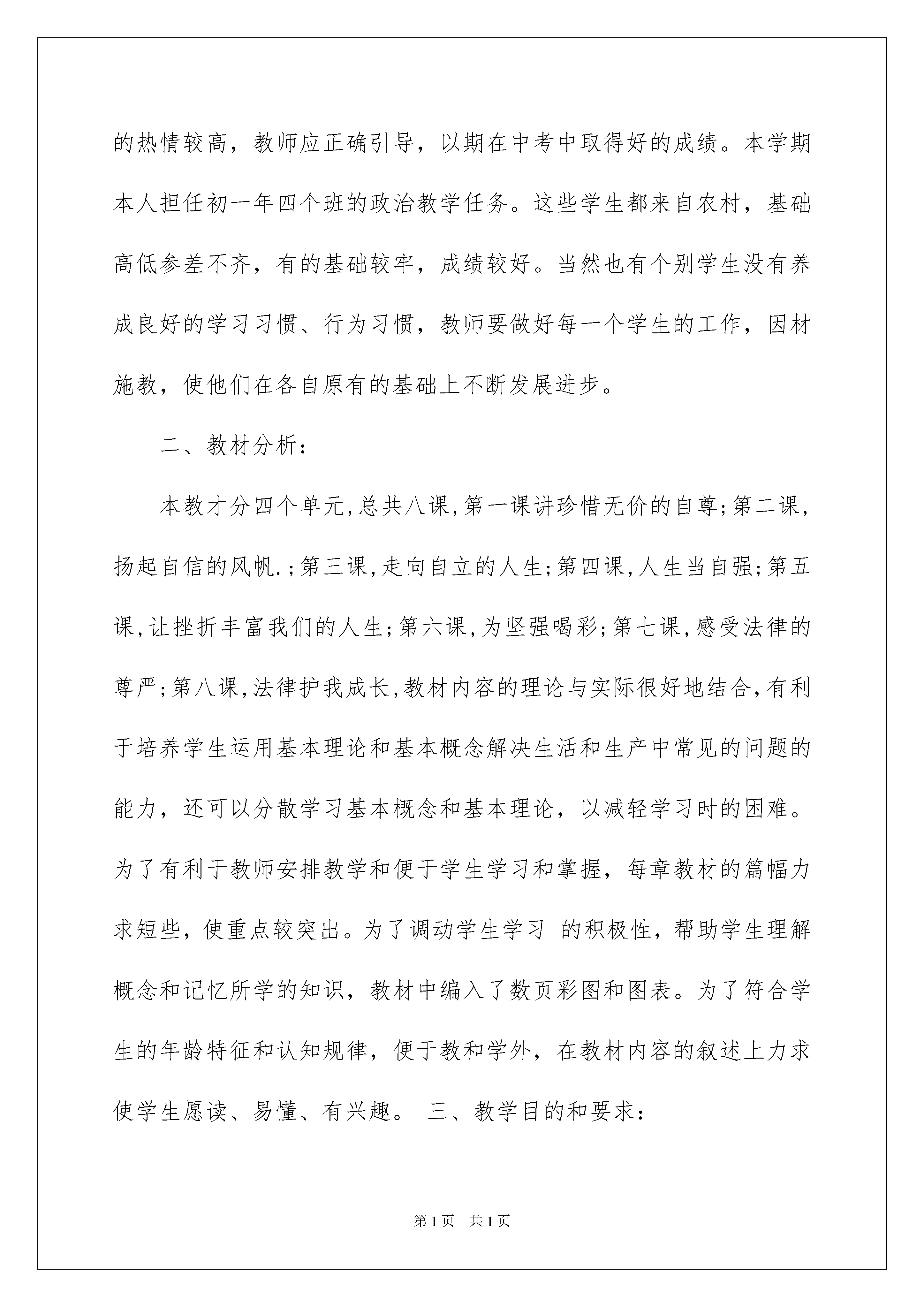 2022初一政治教学计划锦集七篇初一政治教学计划锦集七篇日子在弹指一挥间就毫无声息的流逝又将迎来新的工作新的挑战此时此刻需要为接下来的工作做一个详细的计划了。可是到底什么样的计划才是适合自己的呢?下面是我帮大家整理的初一政治教