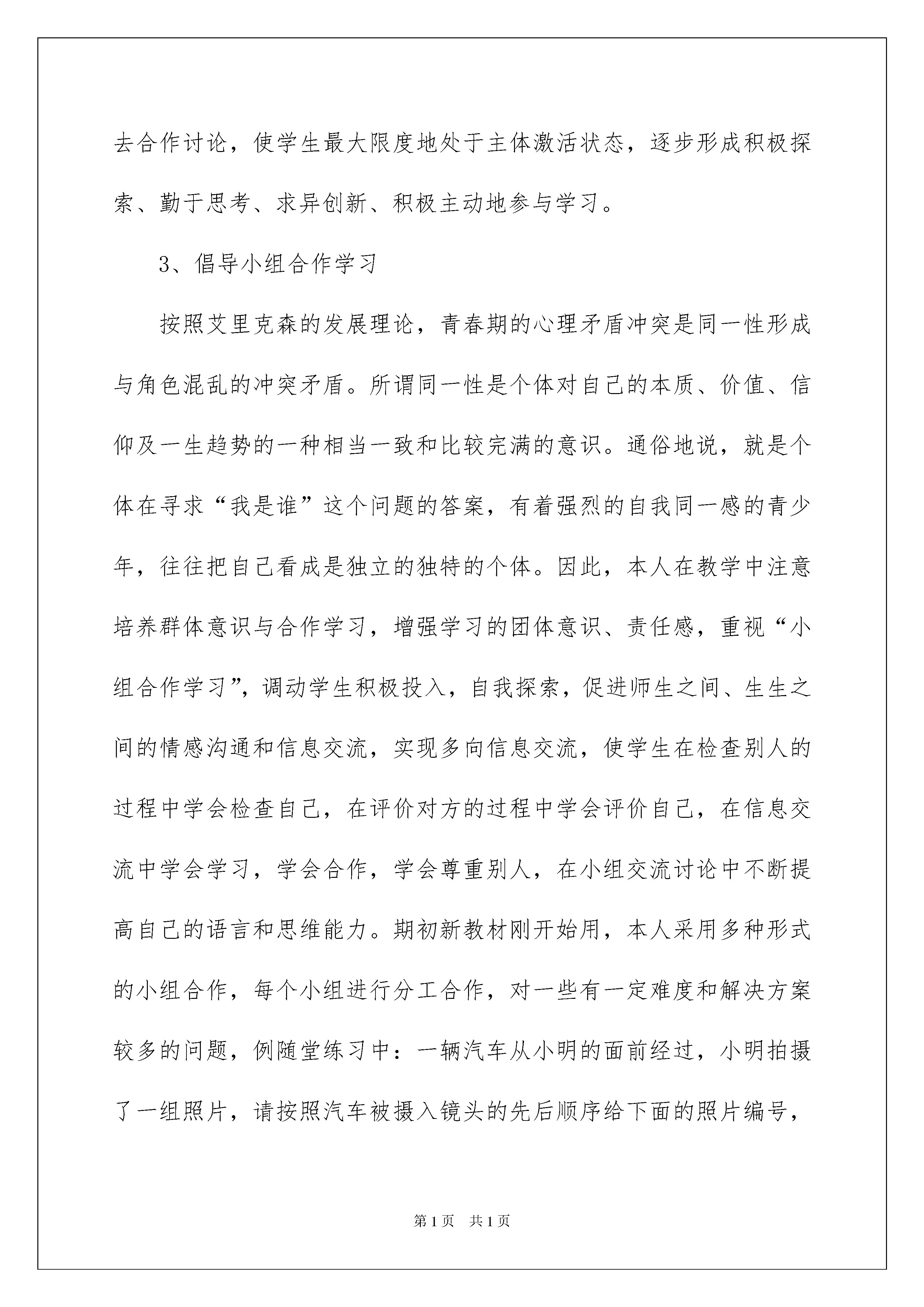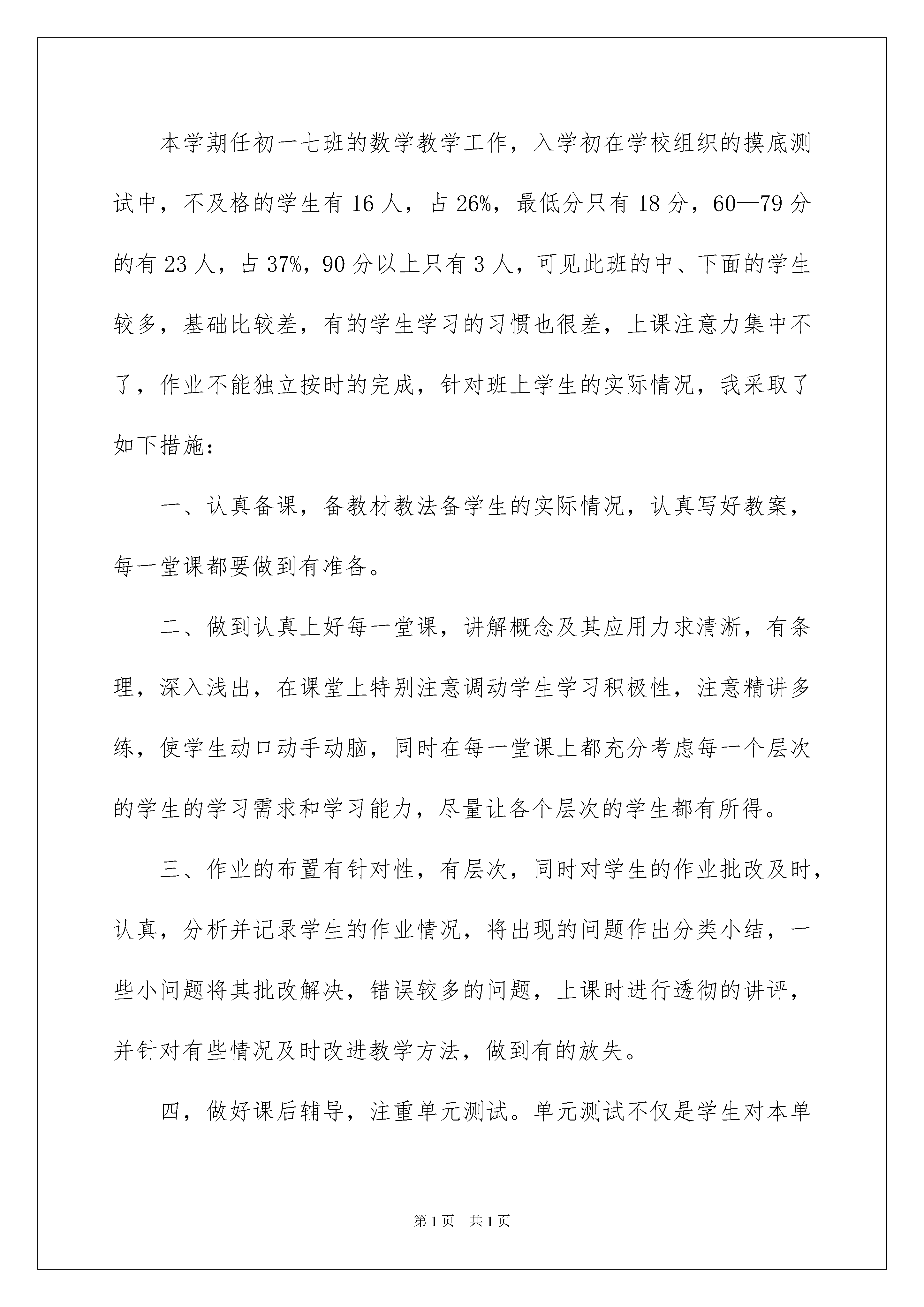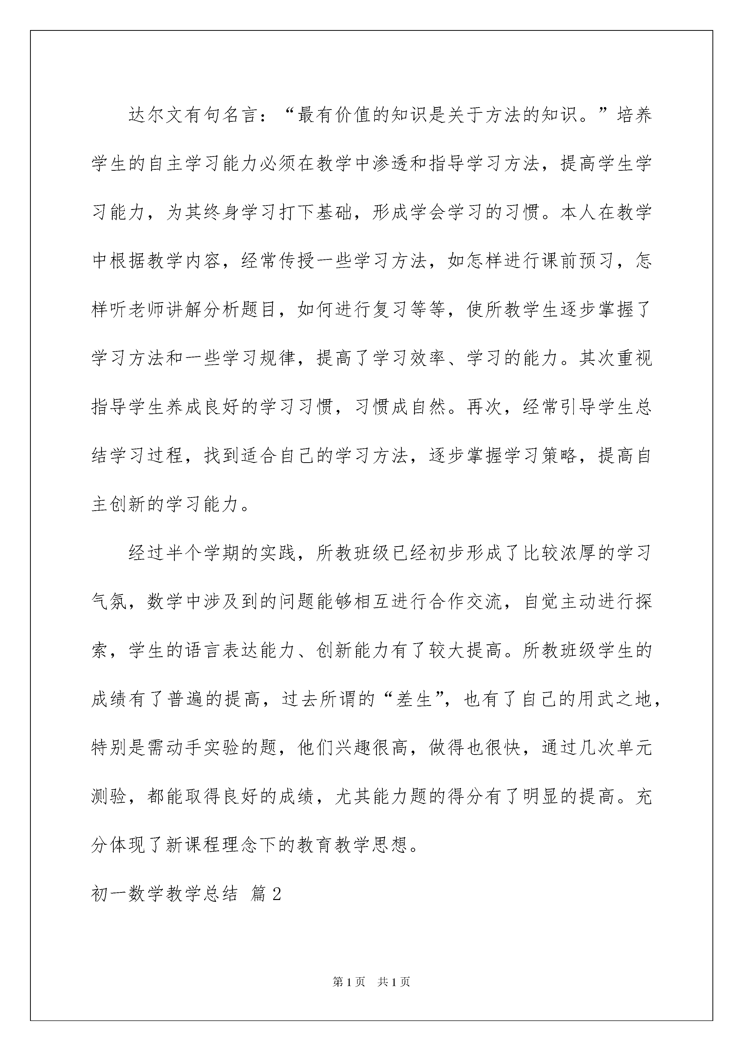 2022初一数学教学总结十篇初一数学教学总结十篇总结是把一定阶段内的有关情况分析研究,做出有指导性的经验方法以及结论的书面材料,它可以帮助我们总结以往思想,发扬成绩,为此我们要做好回顾,写好总结。那么你知道总结如何写吗?以下是我精心整理的初一数学教学总结10篇,希望能够帮助到大家。初一数学教学总结篇1本文认为,现在初一学生刚从小学进来,由于小学旧教材
