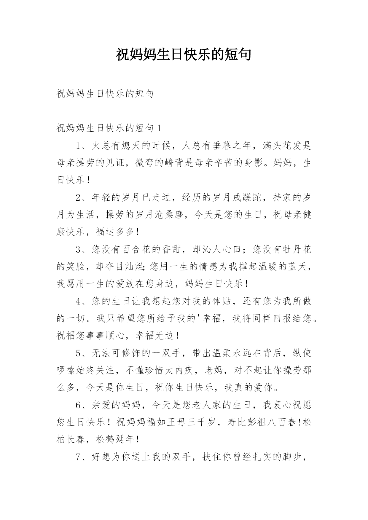 祝妈妈生日快乐的短句 祝妈妈生日快乐的短句抖音.docx