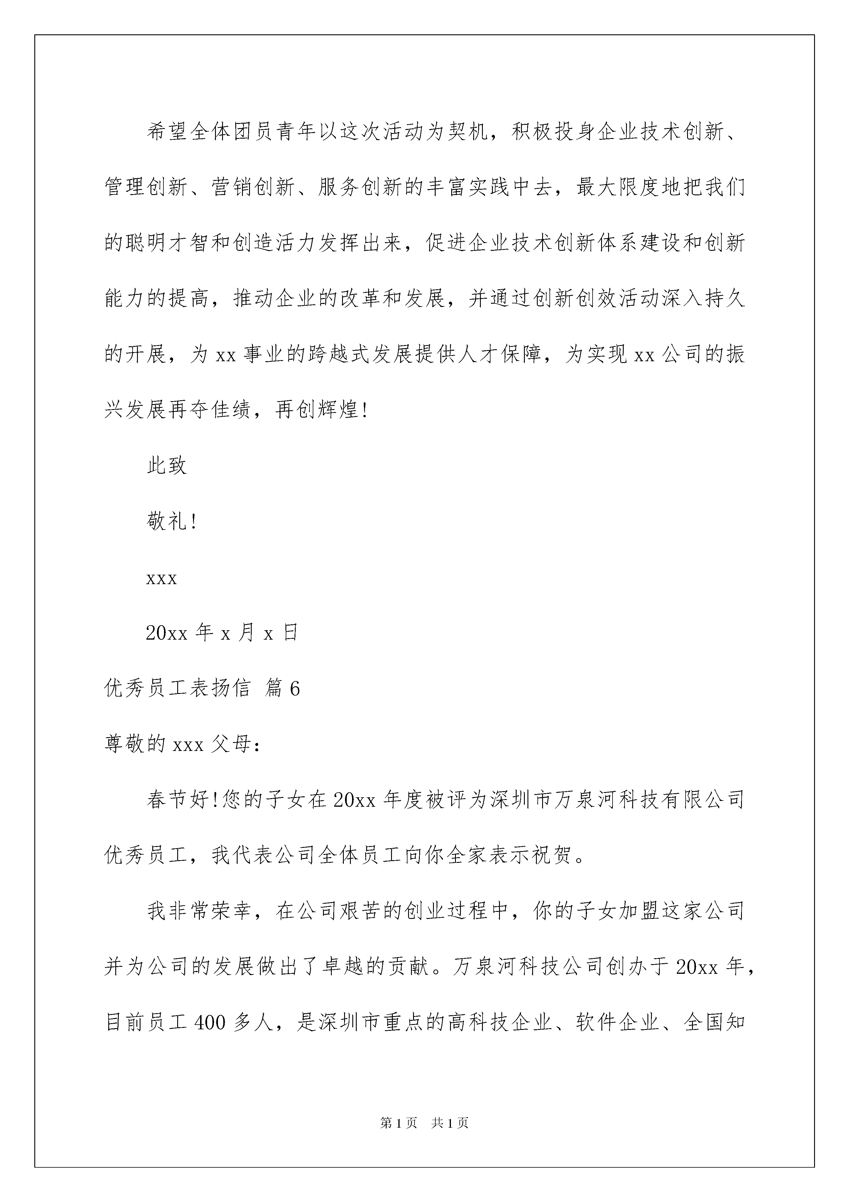 2022优秀员工表扬信锦集十篇优秀员工表扬信锦集十篇随着社会一步步向前发展,我们使用上表扬信的情况与日俱增,在写作上,表扬信有一定的书写规范。大家知道表扬信的格式吗?以下是我收集整理的优秀员工表扬信10篇,欢迎阅读与收藏。优秀员工表扬信篇120xx年4月,中海集团发展部对我司苏州*****项目进行了一次实测实量的检查。在此次实测实量检查中,我司苏州*