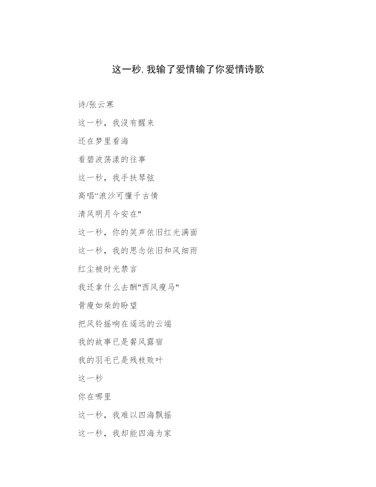 这一秒,我输了爱情输了你爱情诗歌.docx