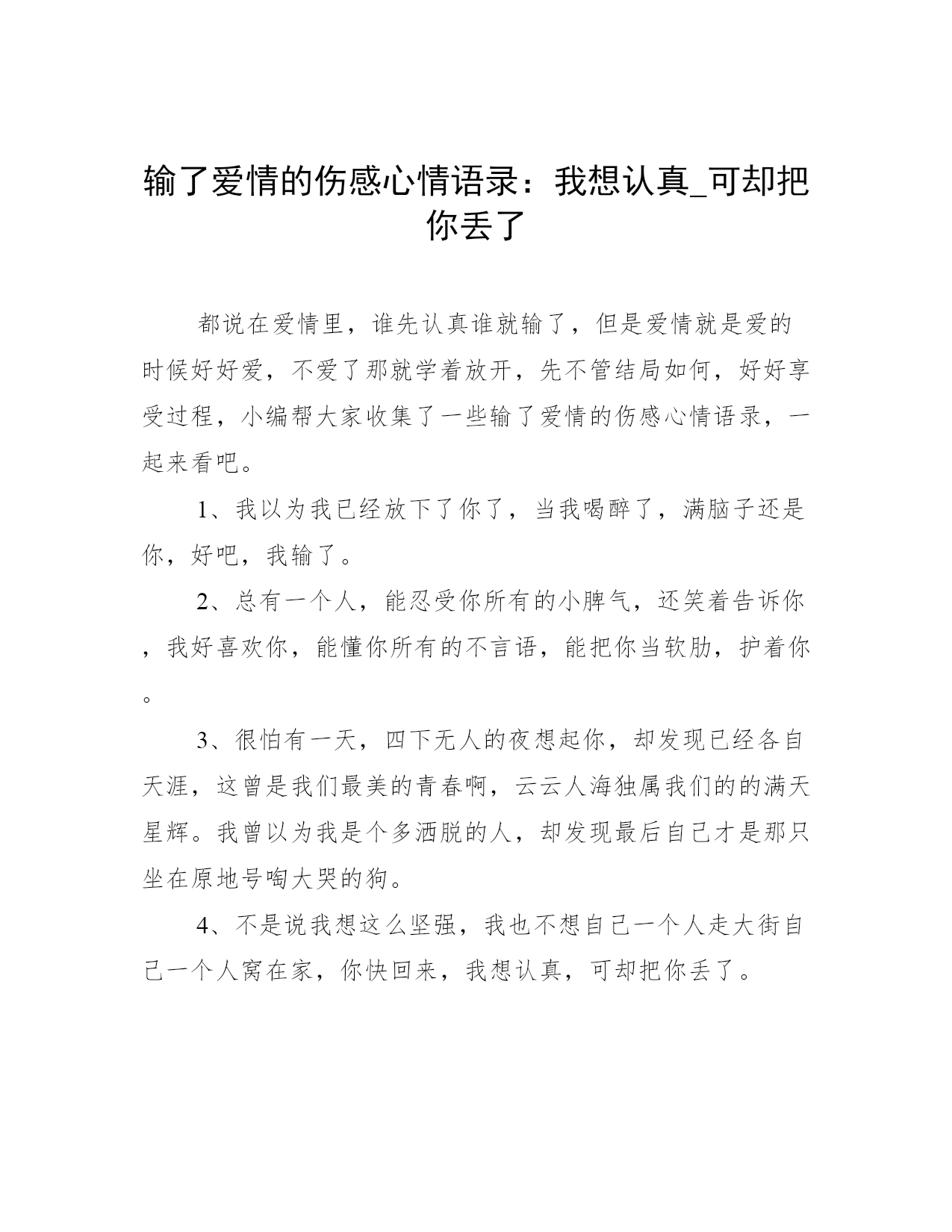 输了爱情的伤感心情语录:我想认真_可却把你丢了.docx