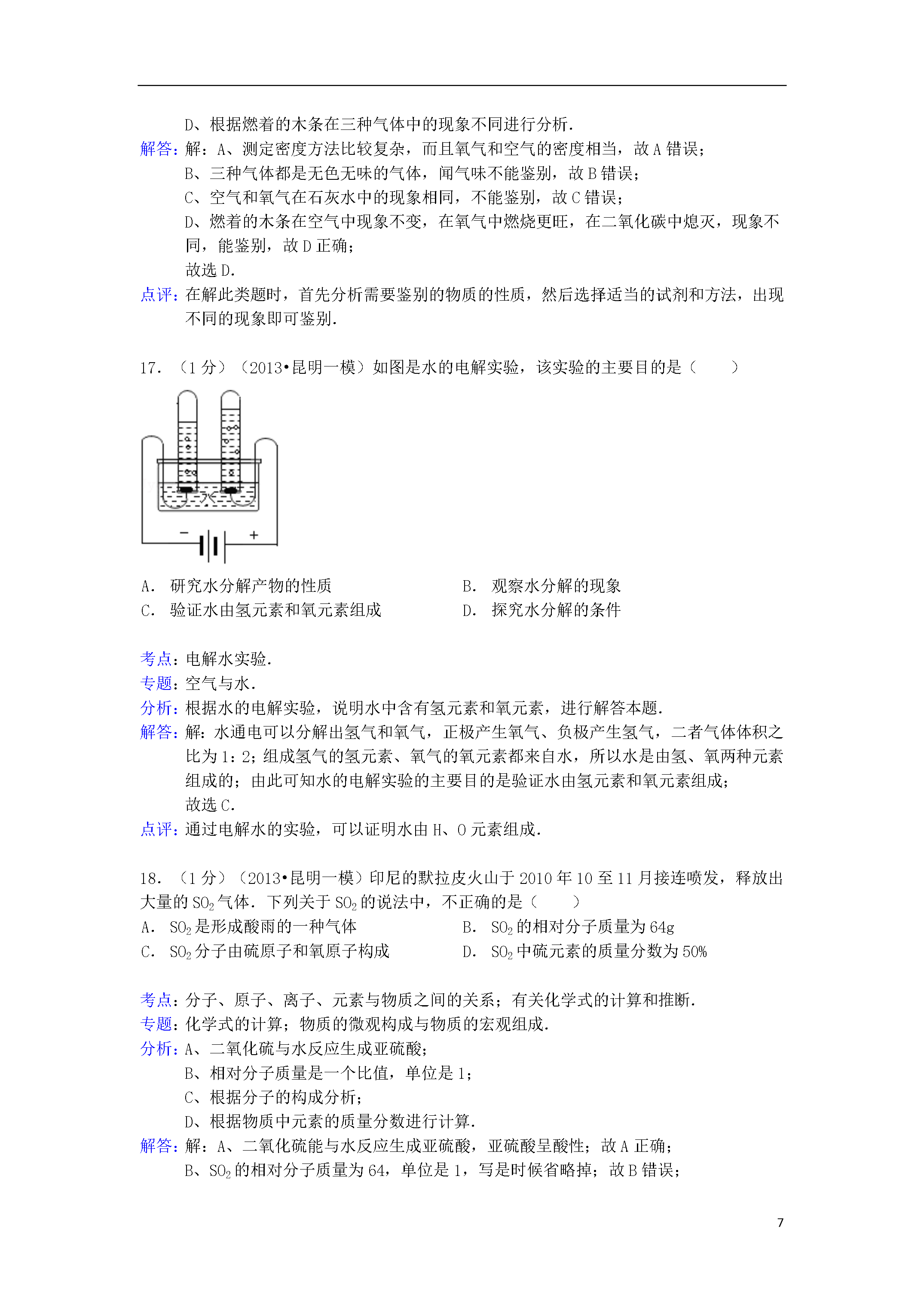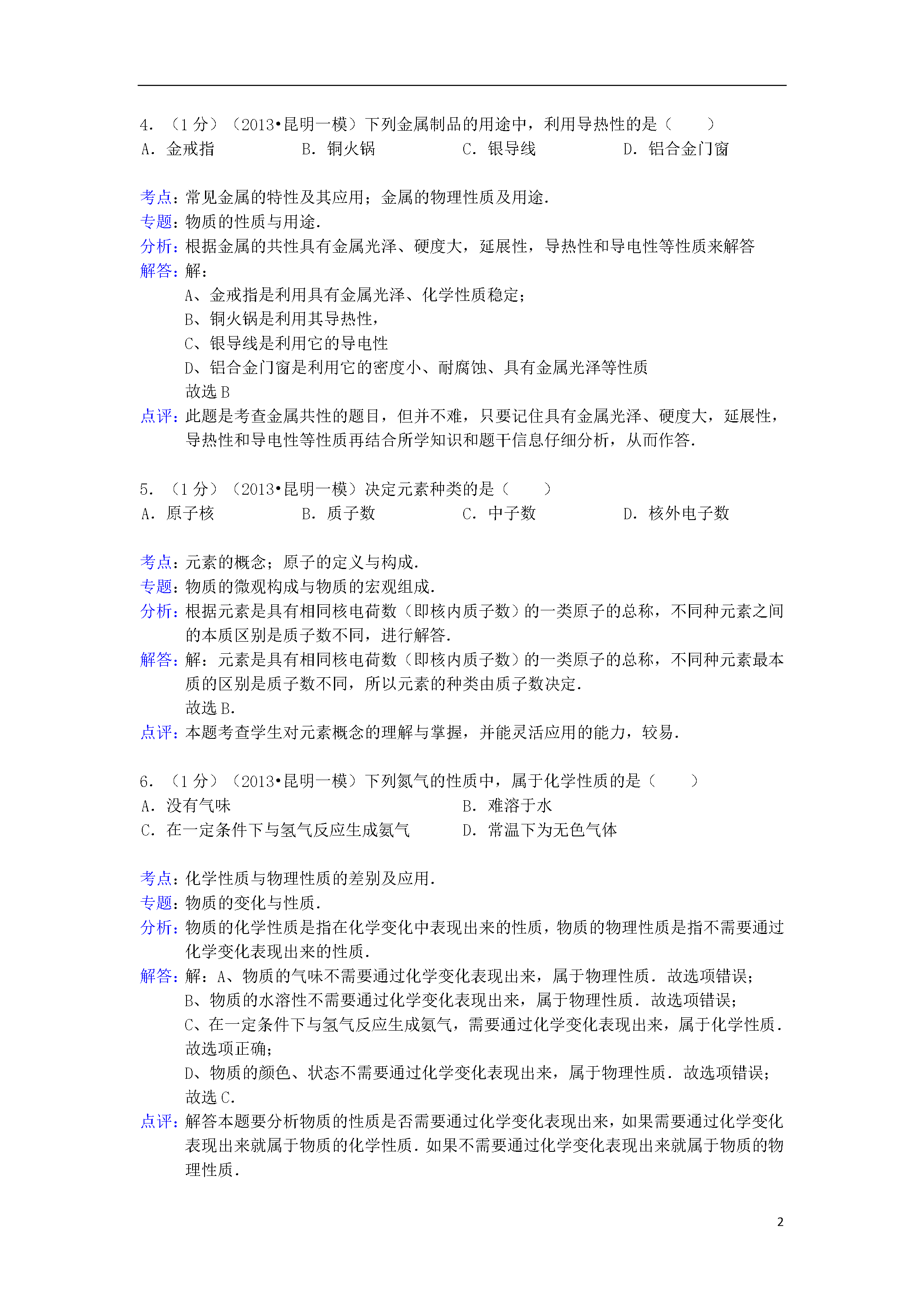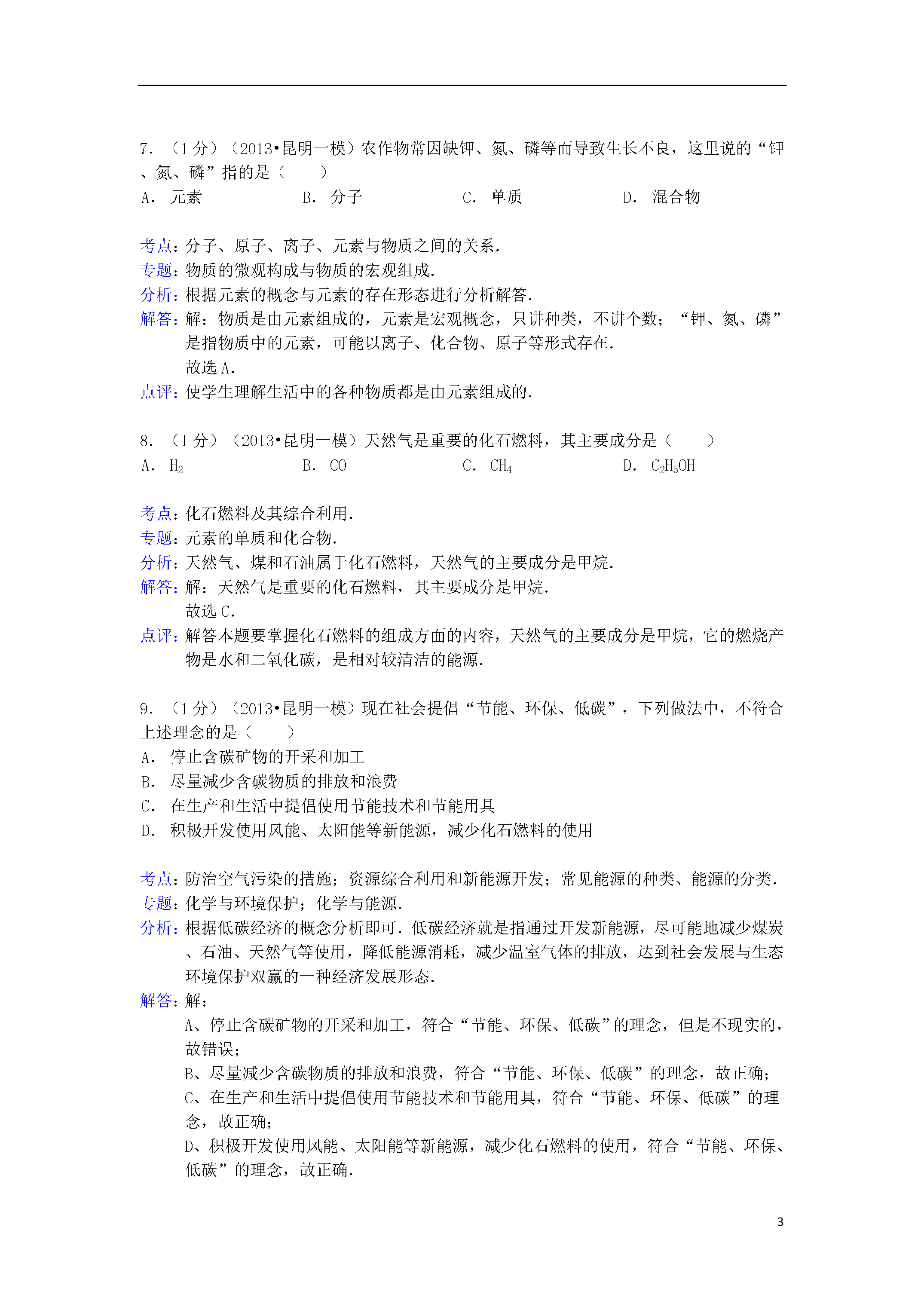 云南省昆明市2013年中考化学一模试卷(解析版).doc