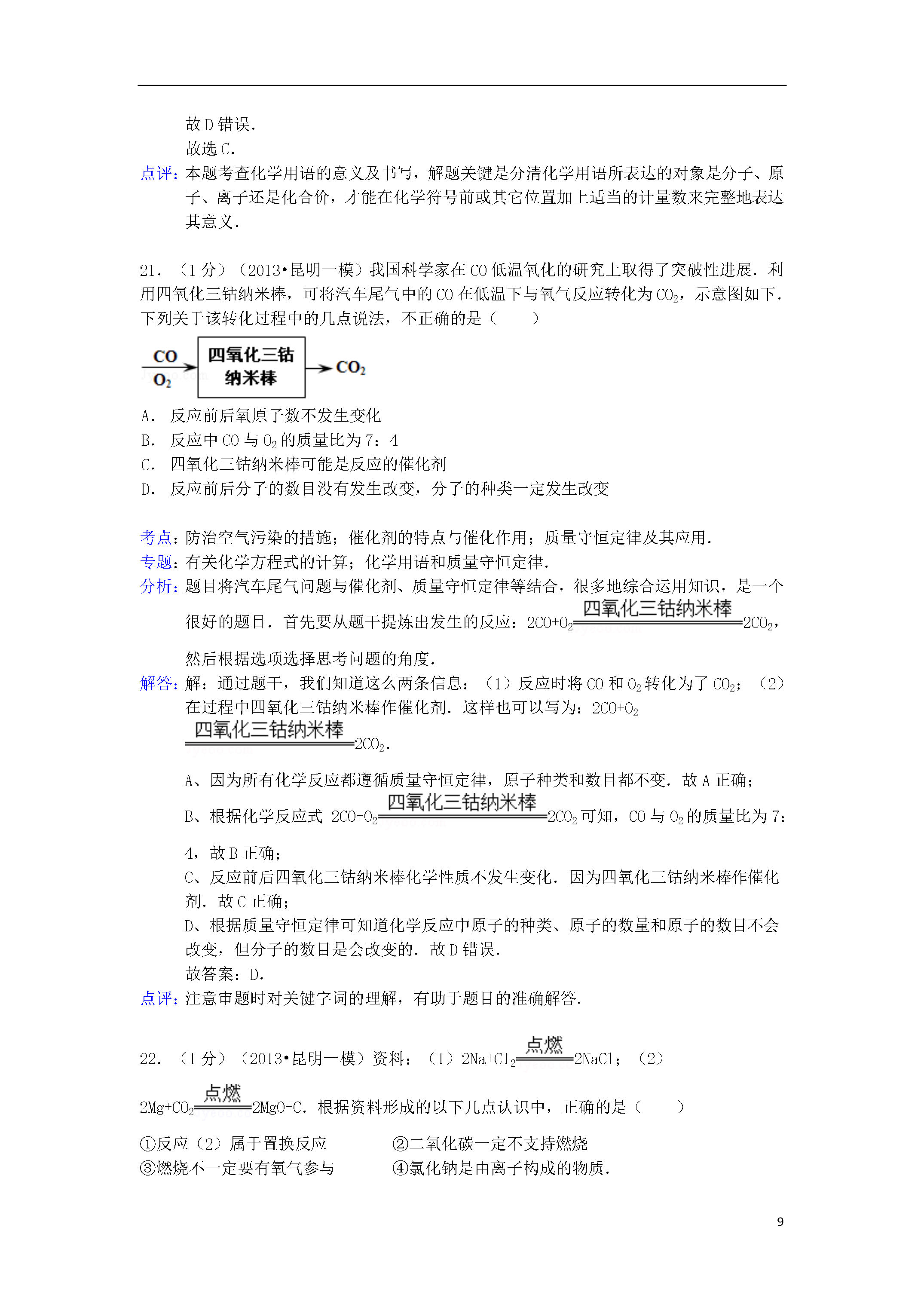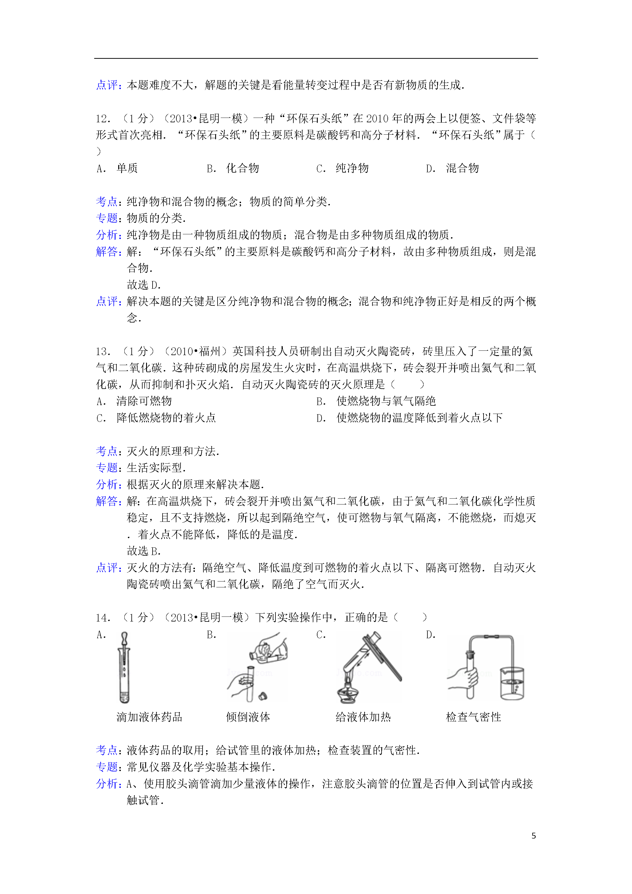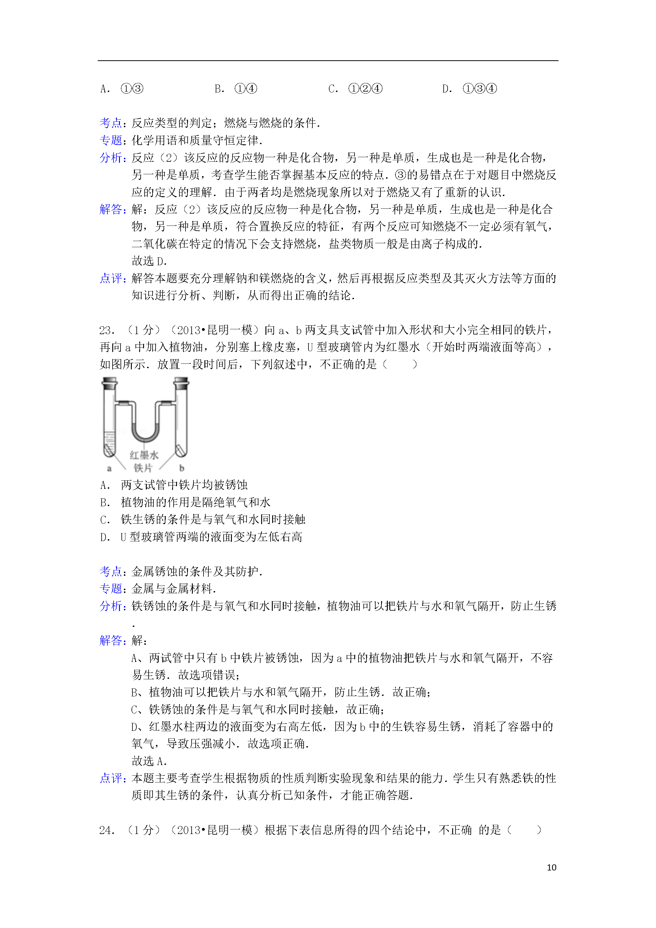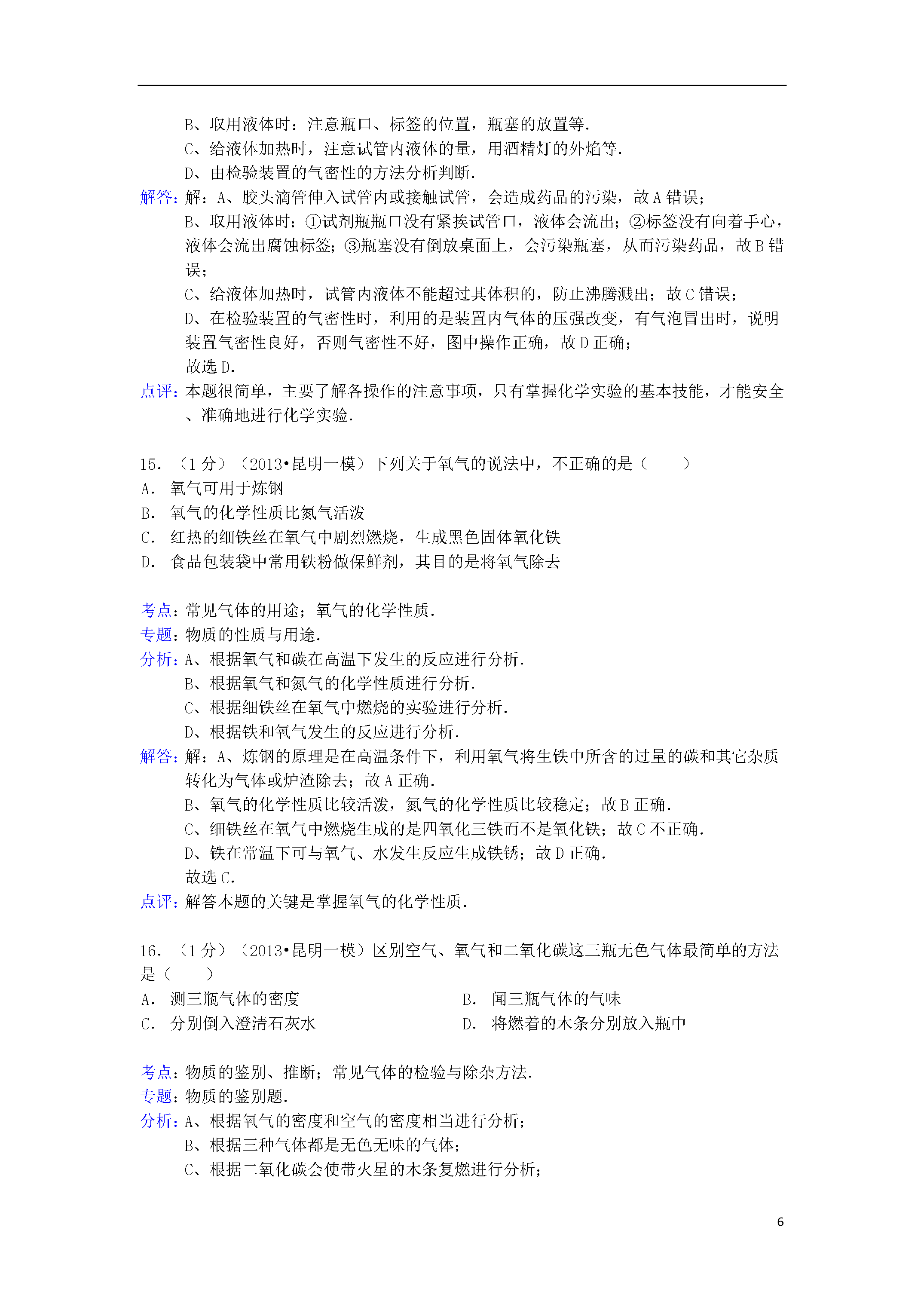 云南省昆明市2013年中考化学一模试卷(解析版).doc