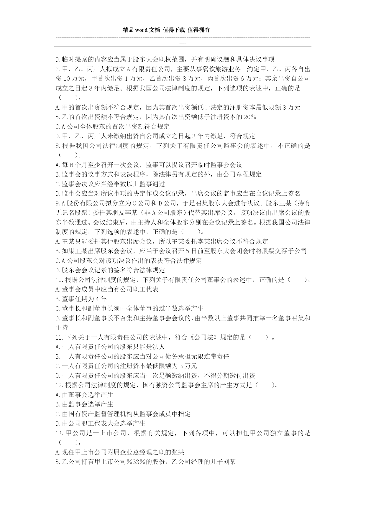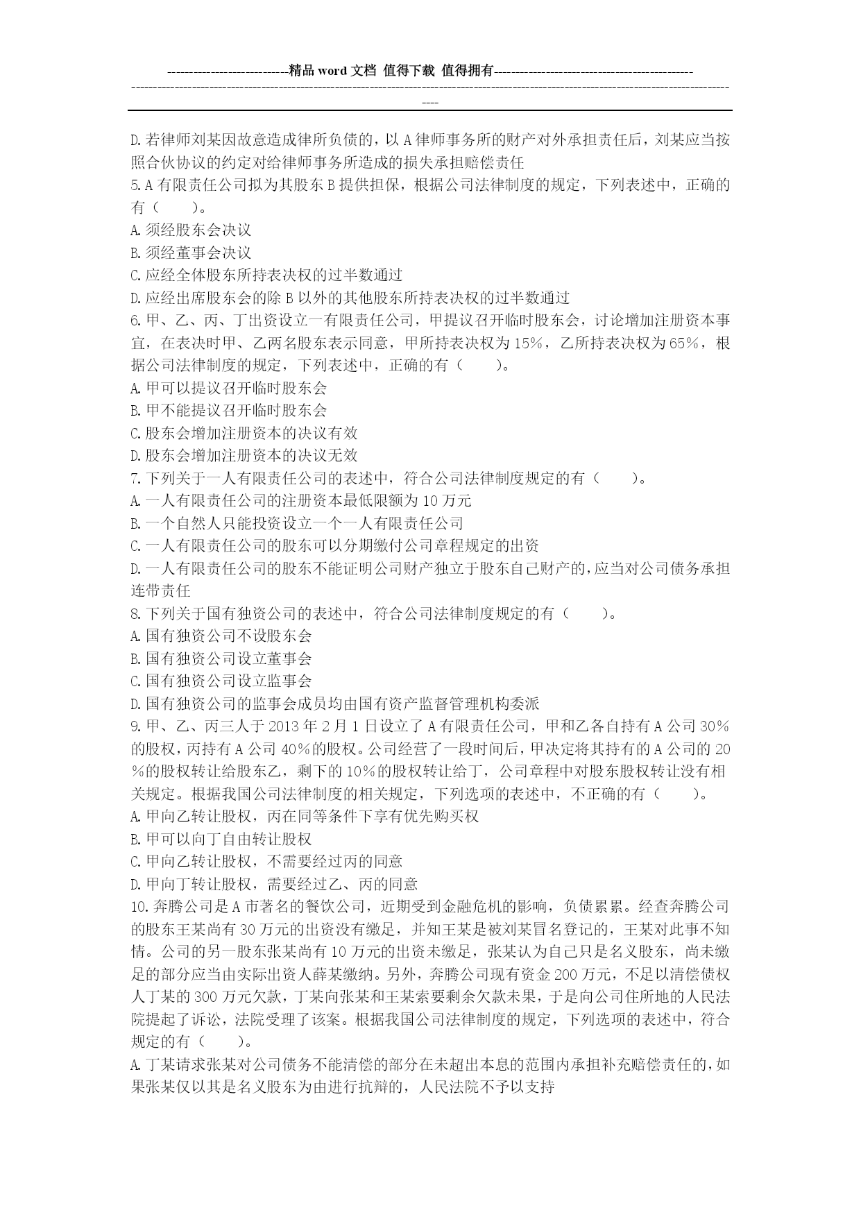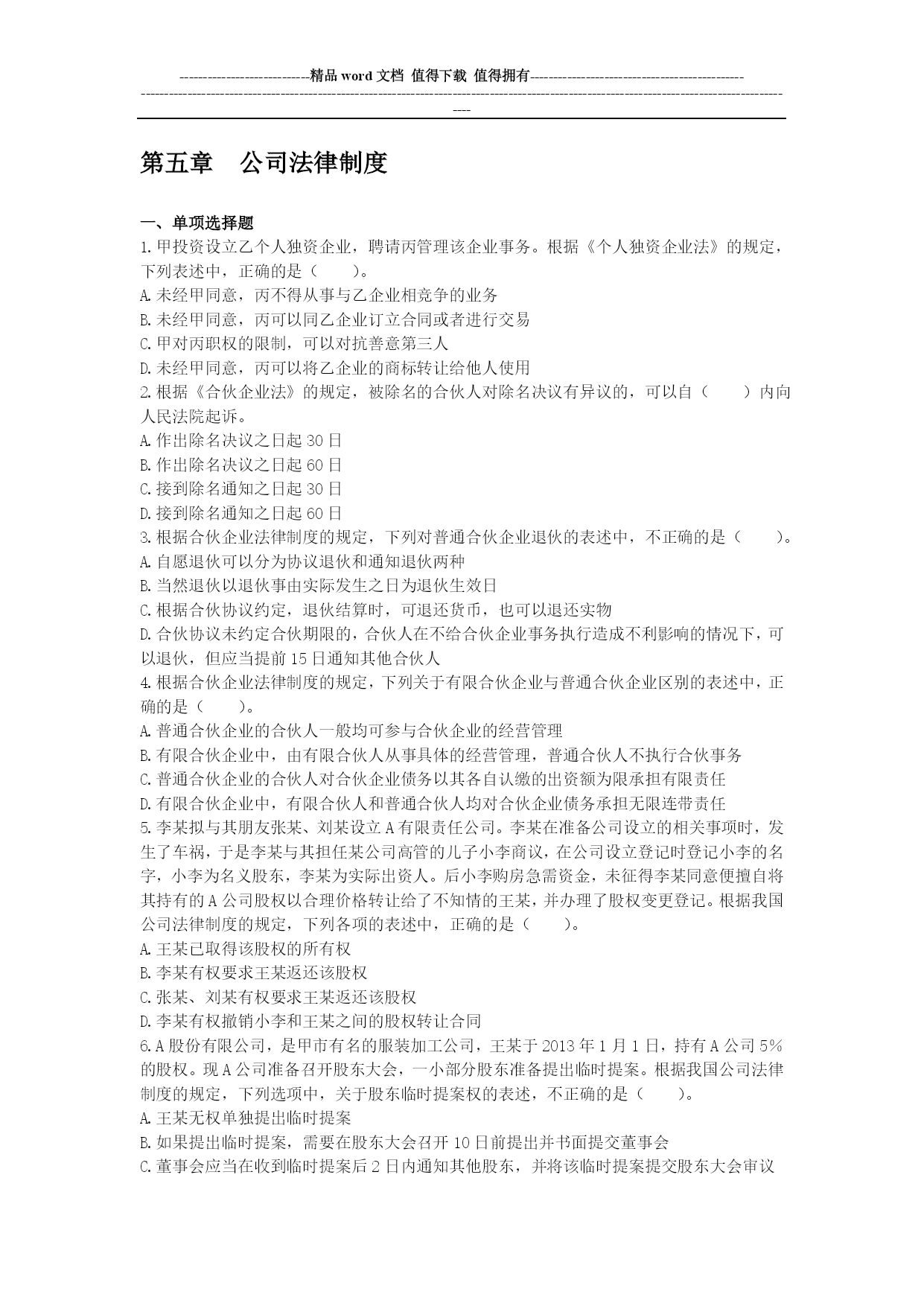 经济法(2013年)第五章-公司法律制度--VIP单元测试(下载版).doc