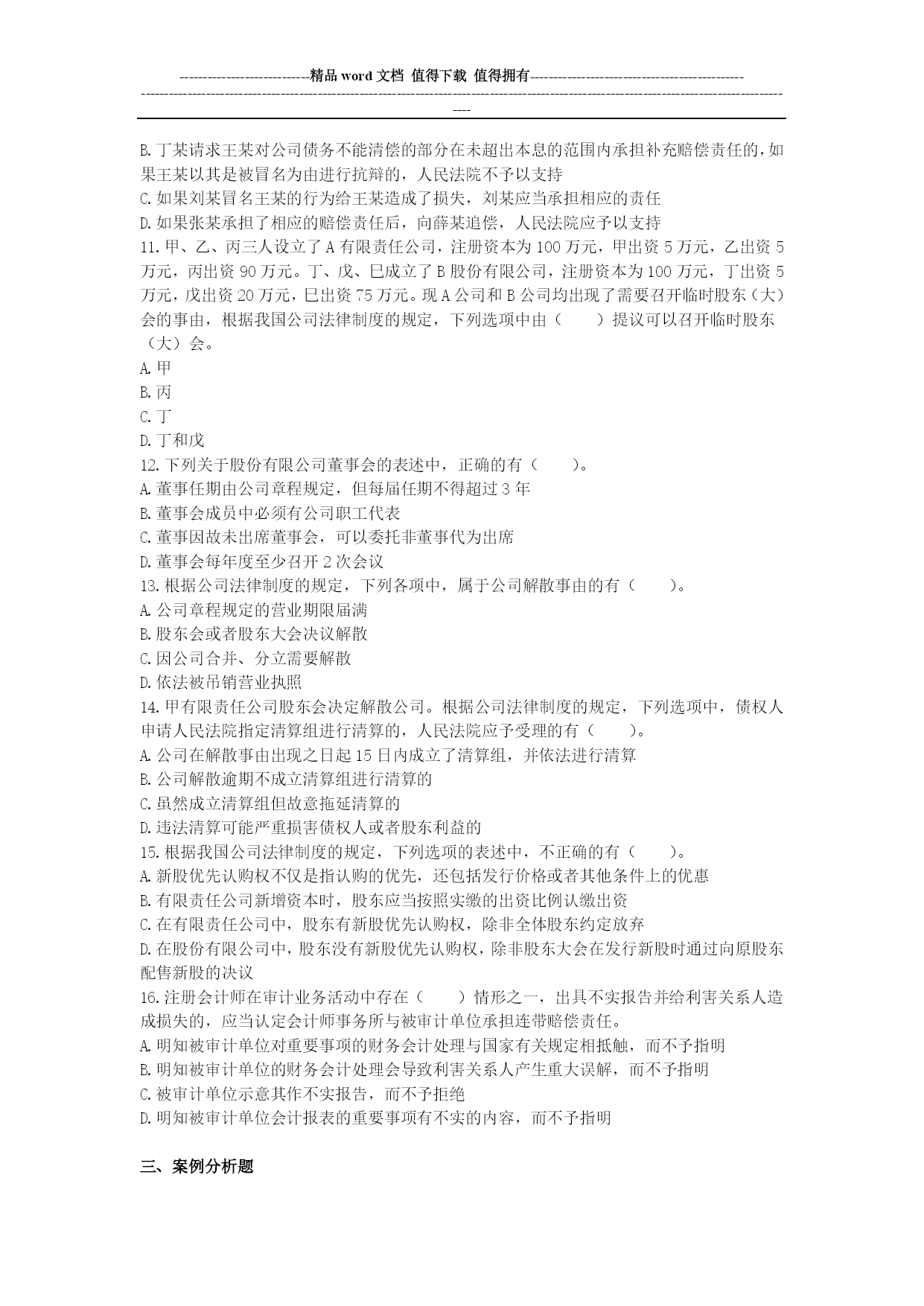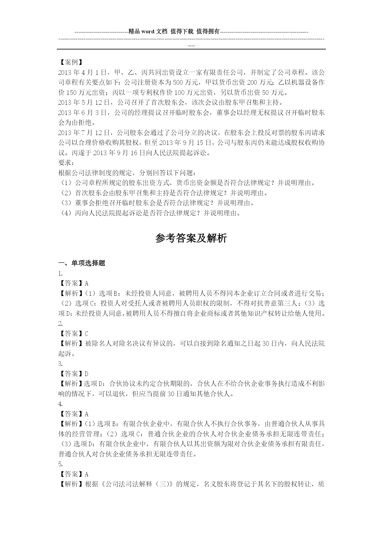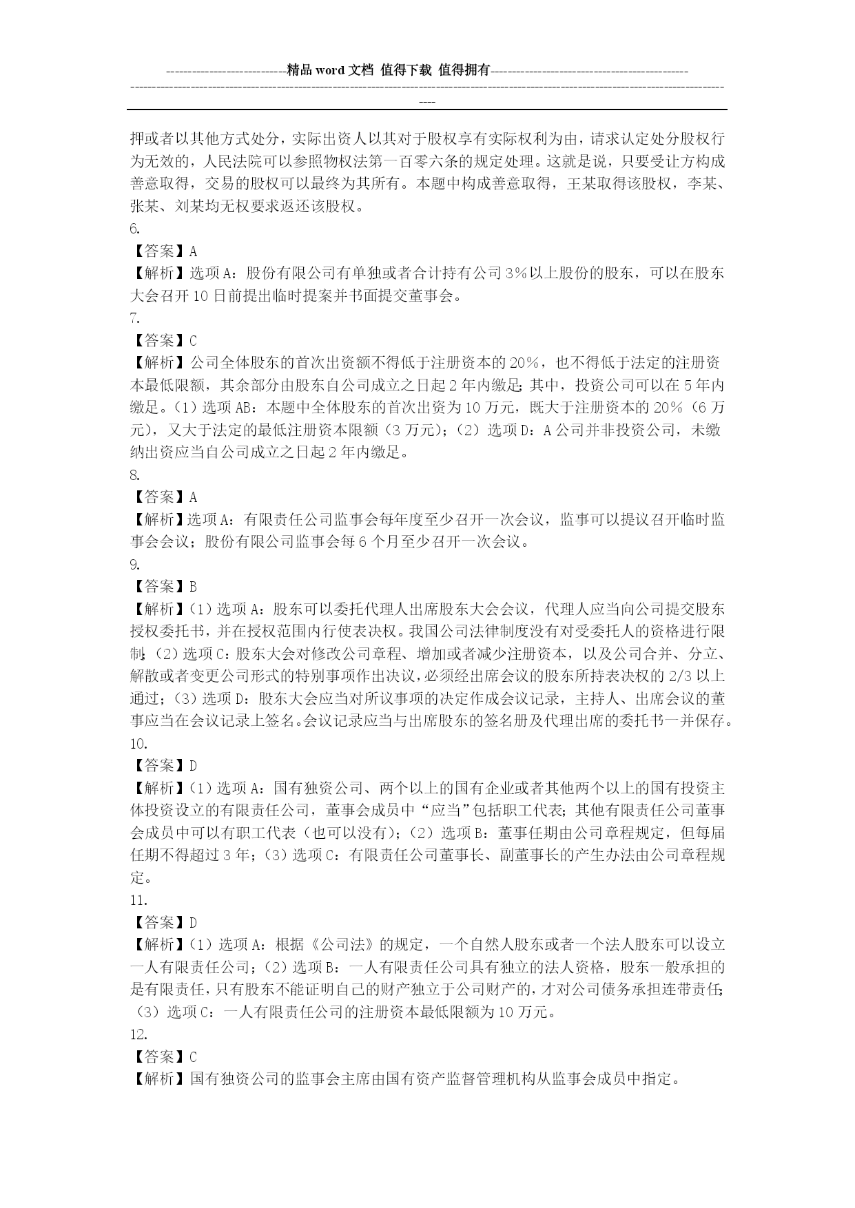 经济法(2013年)第五章-公司法律制度--VIP单元测试(下载版).doc
