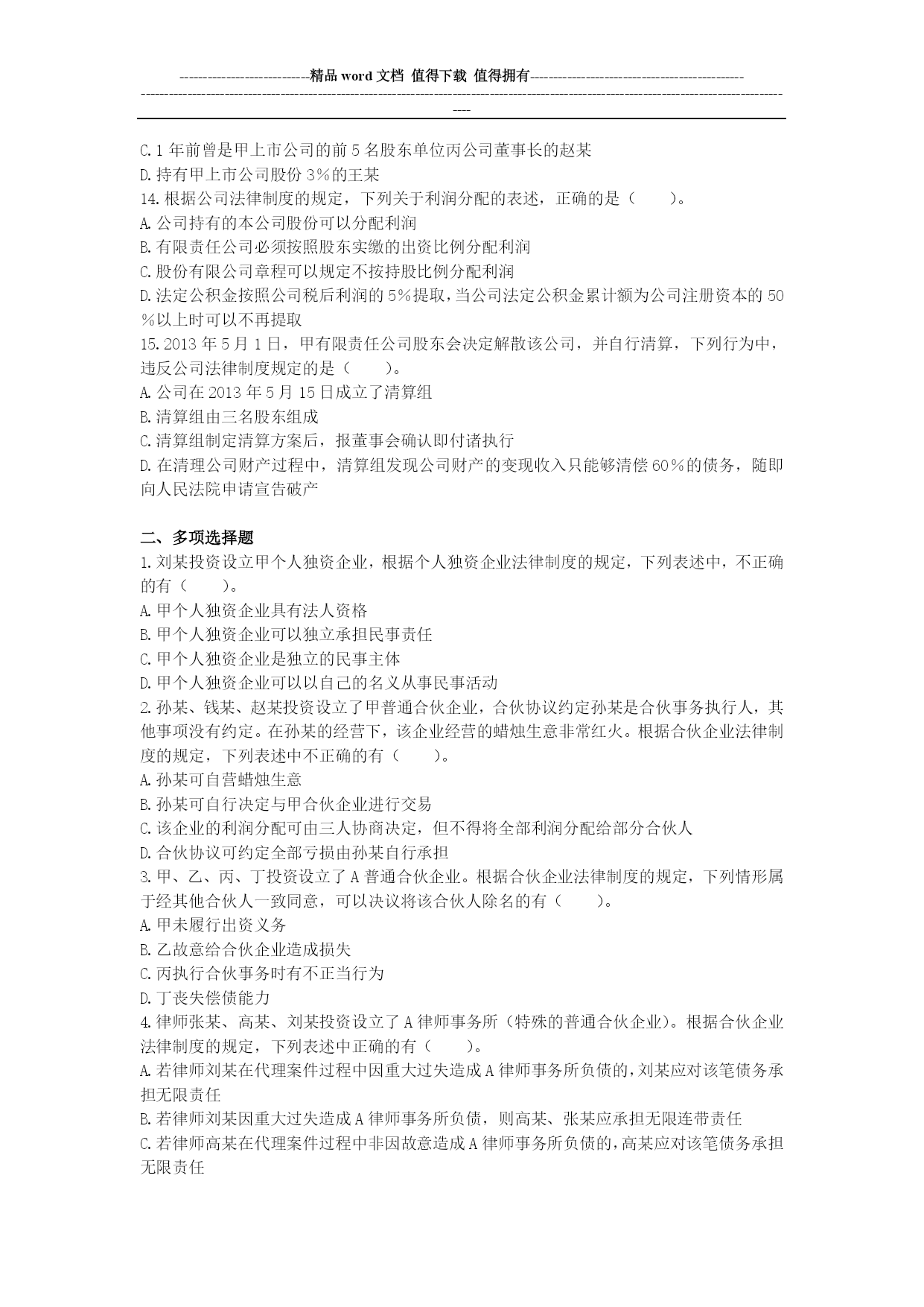 经济法(2013年)第二章-基本民事法律制度--VIP单元测试(下载版).doc