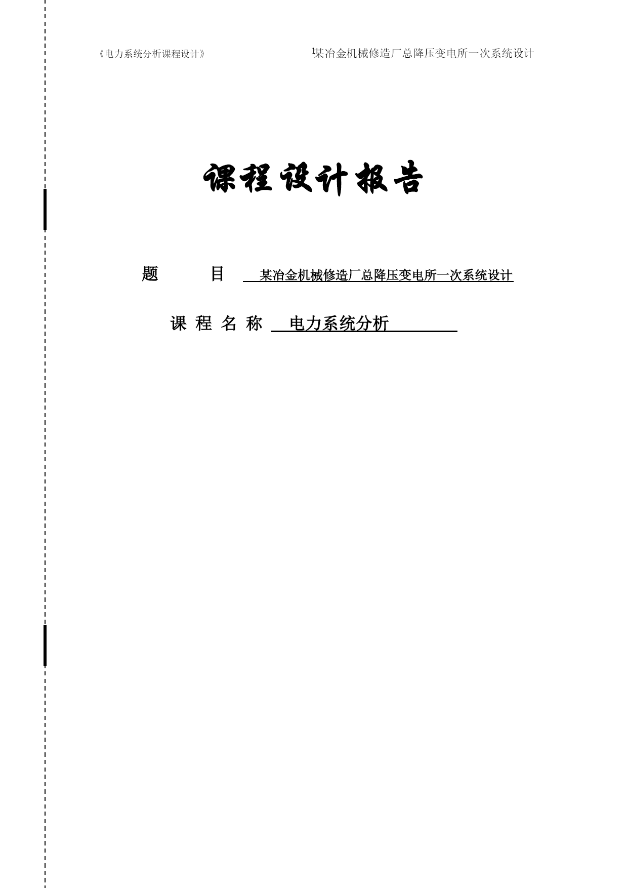 某冶金机械修造厂总降压变电所一次系统设计-电力系统分析课程设计大学--学位论文.doc