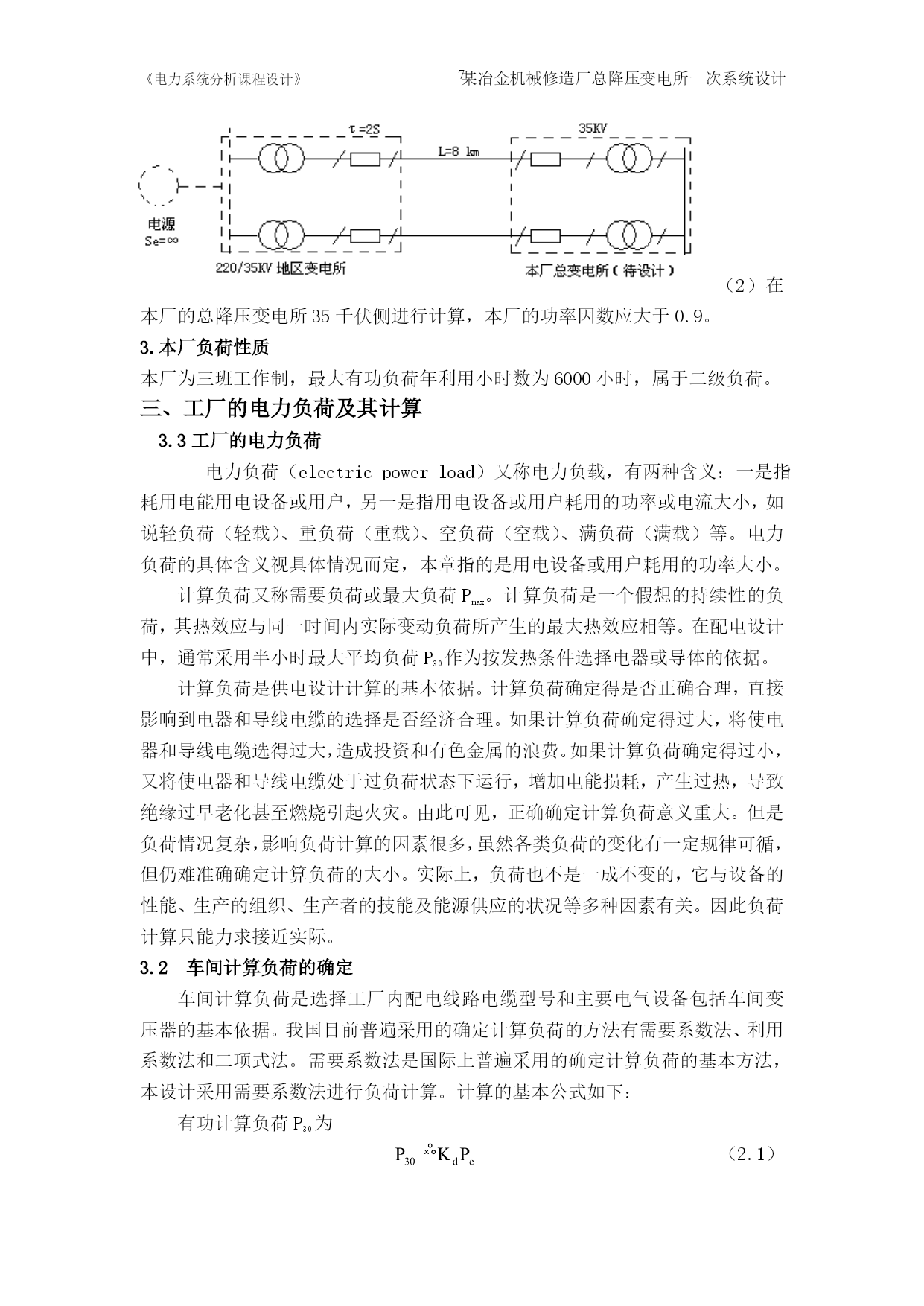 某冶金机械修造厂总降压变电所一次系统设计-电力系统分析课程设计---大学论文.doc