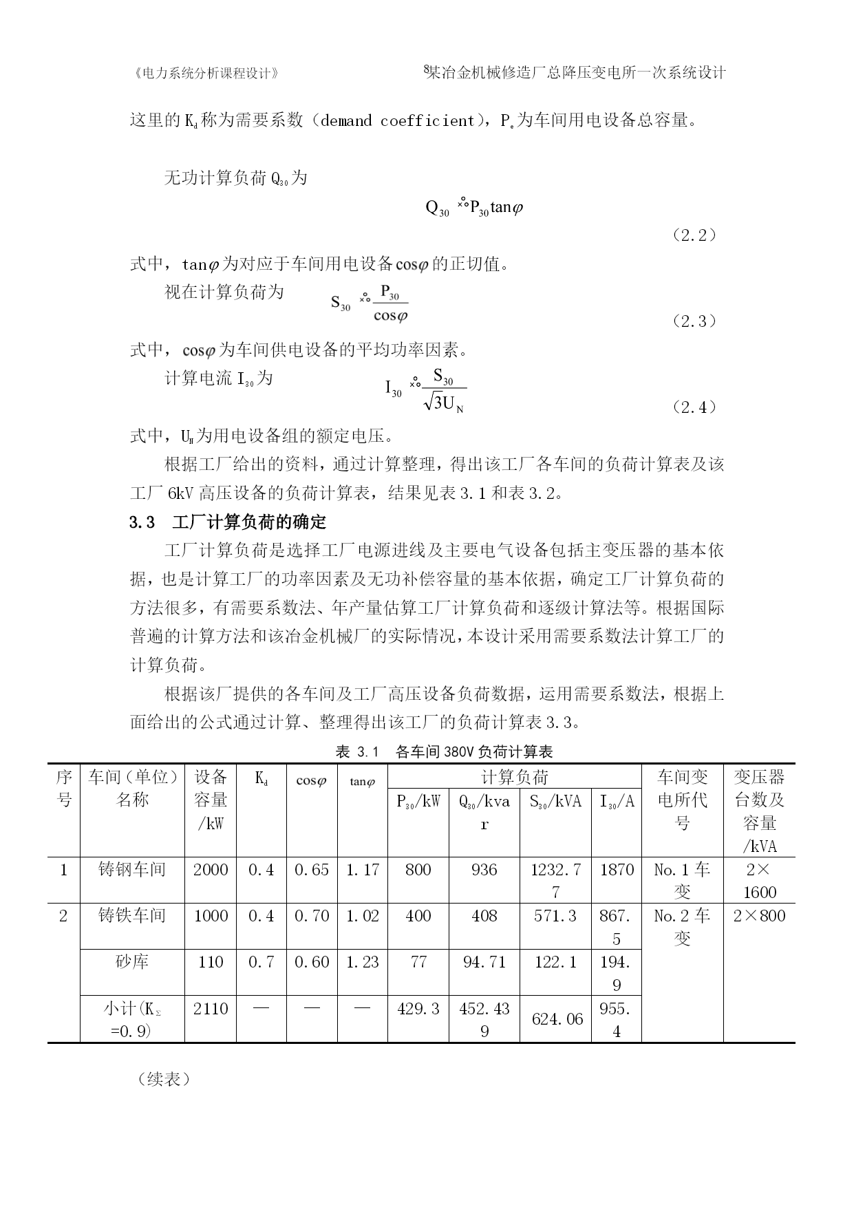 某冶金机械修造厂总降压变电所一次系统设计-电力系统分析课程设计论文.doc
