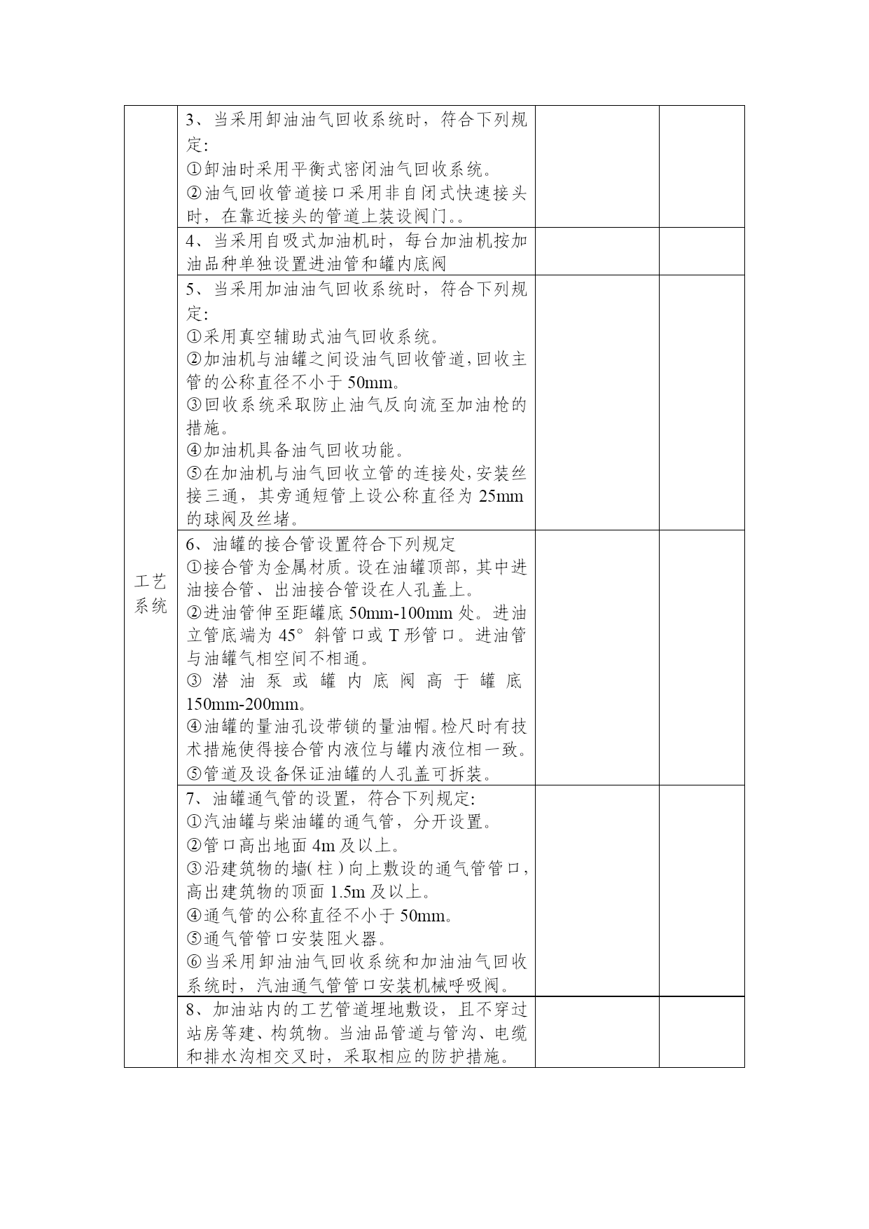 加油站安全生产标准化专项检查表A级要素B级要素标准化要求加油站达标标准检查方法检查标准分数分值得分1法律法规和标准(100)1.1法律法规的识别和取得(50)1.加油站应建立识别和取得适用的安全生产法律、法规、标准及管理制度。1.建立识别和取得适用的安全生产法律法规、标准及政府其他有关要求的管理制度;2.明确责任部门、取得渠道、方式;3.适时识别和取得适用的安全生产法律法规和标准及政府其他有关要求;4.形成法律法规、标准及政府其他有关要求的清单和文本数据库,并定期更新。查文件:1.识别和取得适用的安全生产