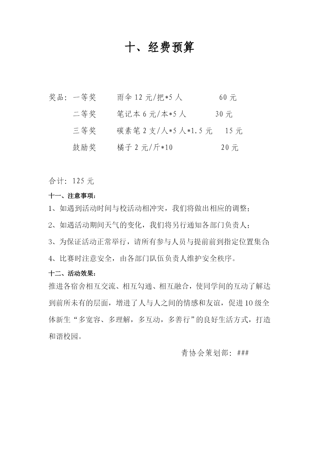 校园趣味游戏活动策划书一段时间的工作在不知不觉间已经告一段落了,我们的工作又将翻开新的一页,迎来新的任务和目标,此时需要提前做好策划书了。你知道写策划书需要注意哪些问题吗?下面是小编为大家收集的校园趣味游戏活动策划书,希望能够帮助到大家。校园趣味游戏活动策划书1主题:促稳定团结,送快乐幸福,建和谐校园。时间:20xx年4月中旬。地点:操场。参加对象:五大组织与各组织团队。主办单位:学生会。承办单位:文体部。协办单位:校学生会其它各部门。活动负责人:学生会文体部各干事。活动意义:以丰富校园生活为初衷,促进我