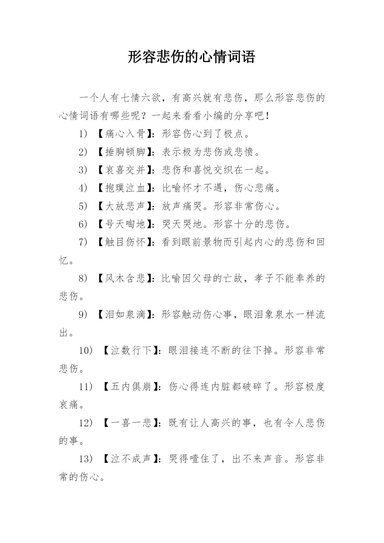 形容心情悲伤的词语 形容心情很悲伤的词语.docx