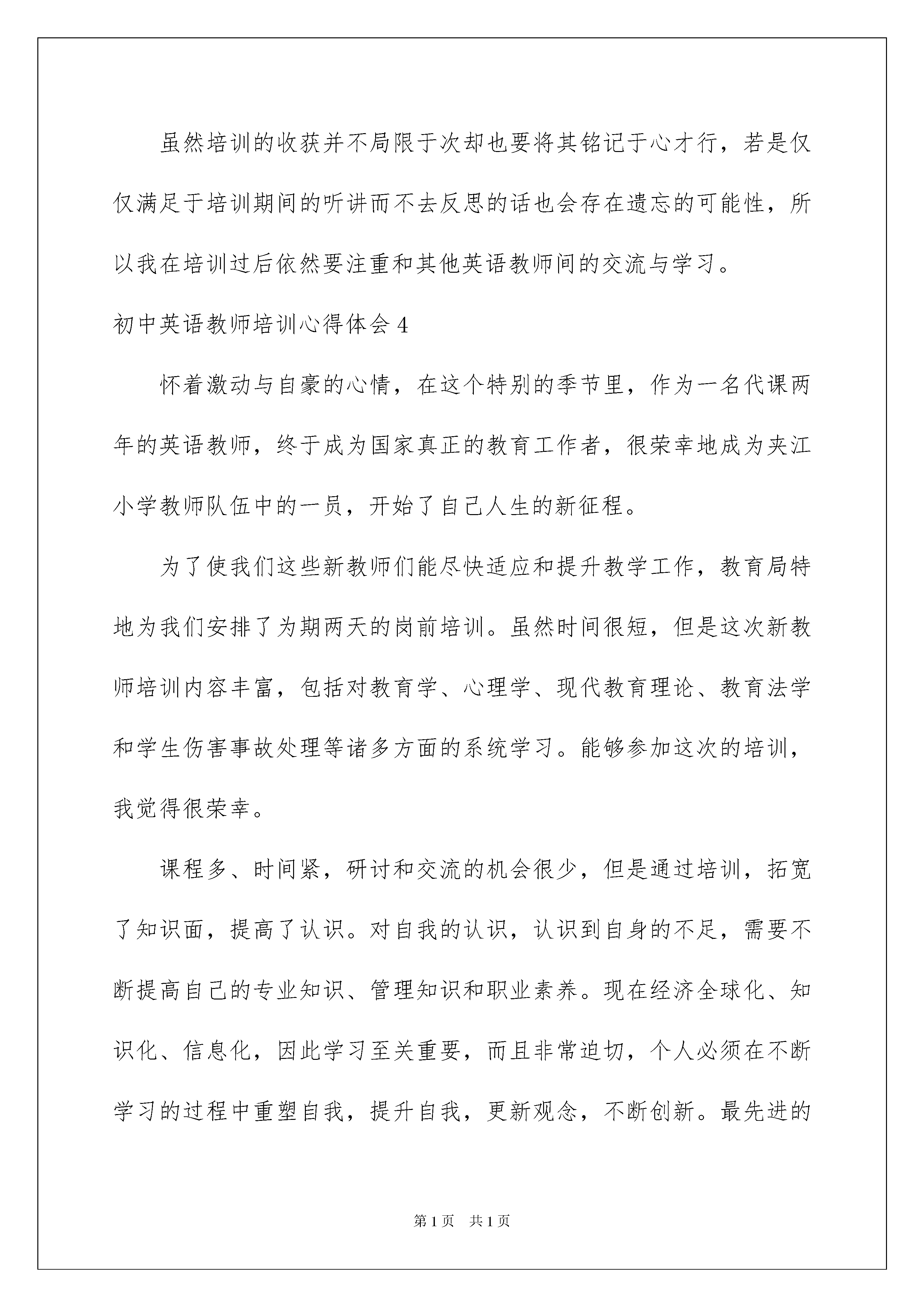 2022初中英语教师培训心得体会初中英语教师培训心得体会有了一些收获以后应该马上记录下来写一篇心得体会这样能够给人努力向前的动力。那么好的心得体会是什么样的呢?下面是我帮大家整理的初中英语教师培训心得体会仅供参考欢迎大家阅读。