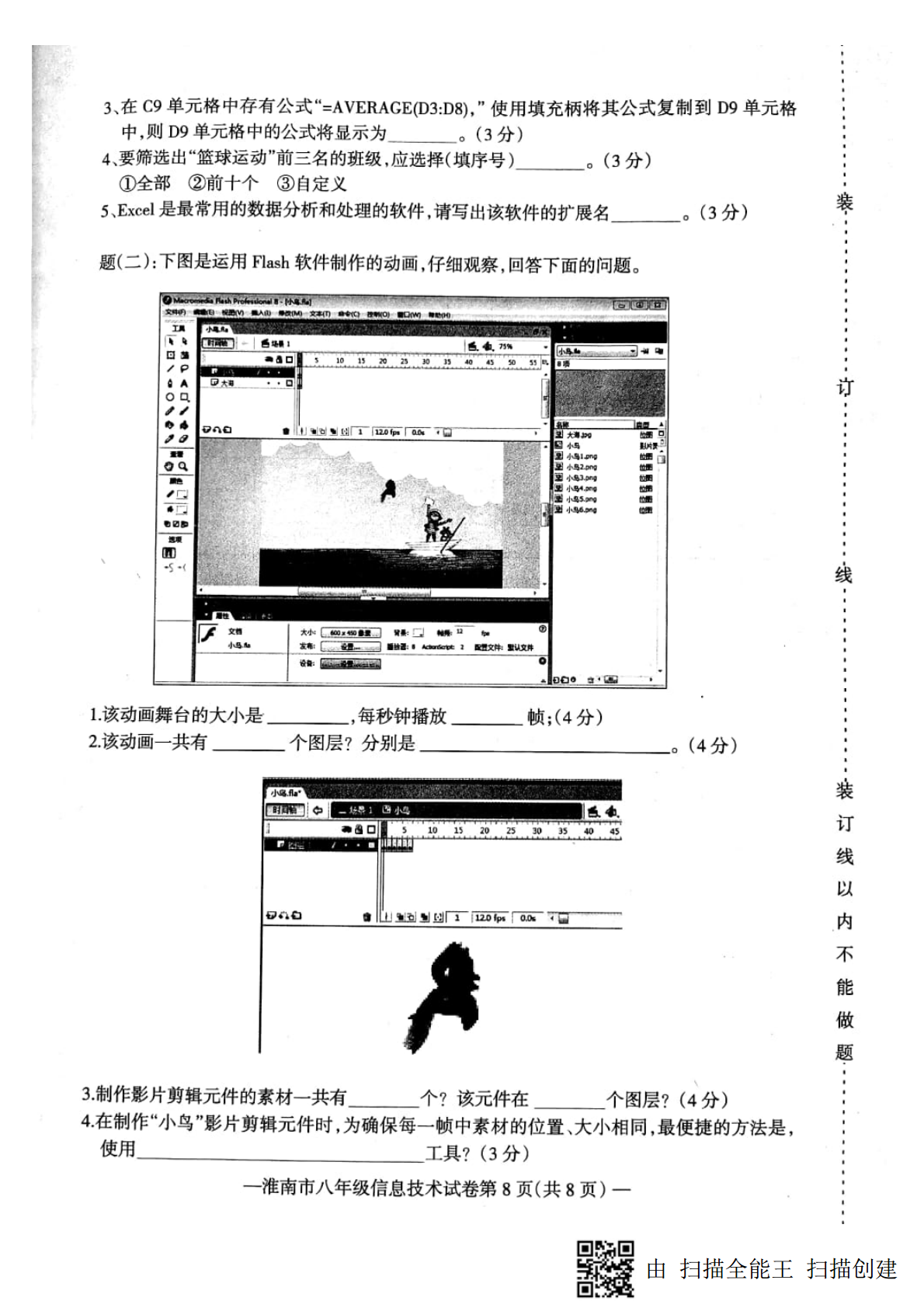 试题-安徽-2018_安徽省淮南市2017-2018学年八年级信息技术下学期期末试题(pdf) 新人教版.rar