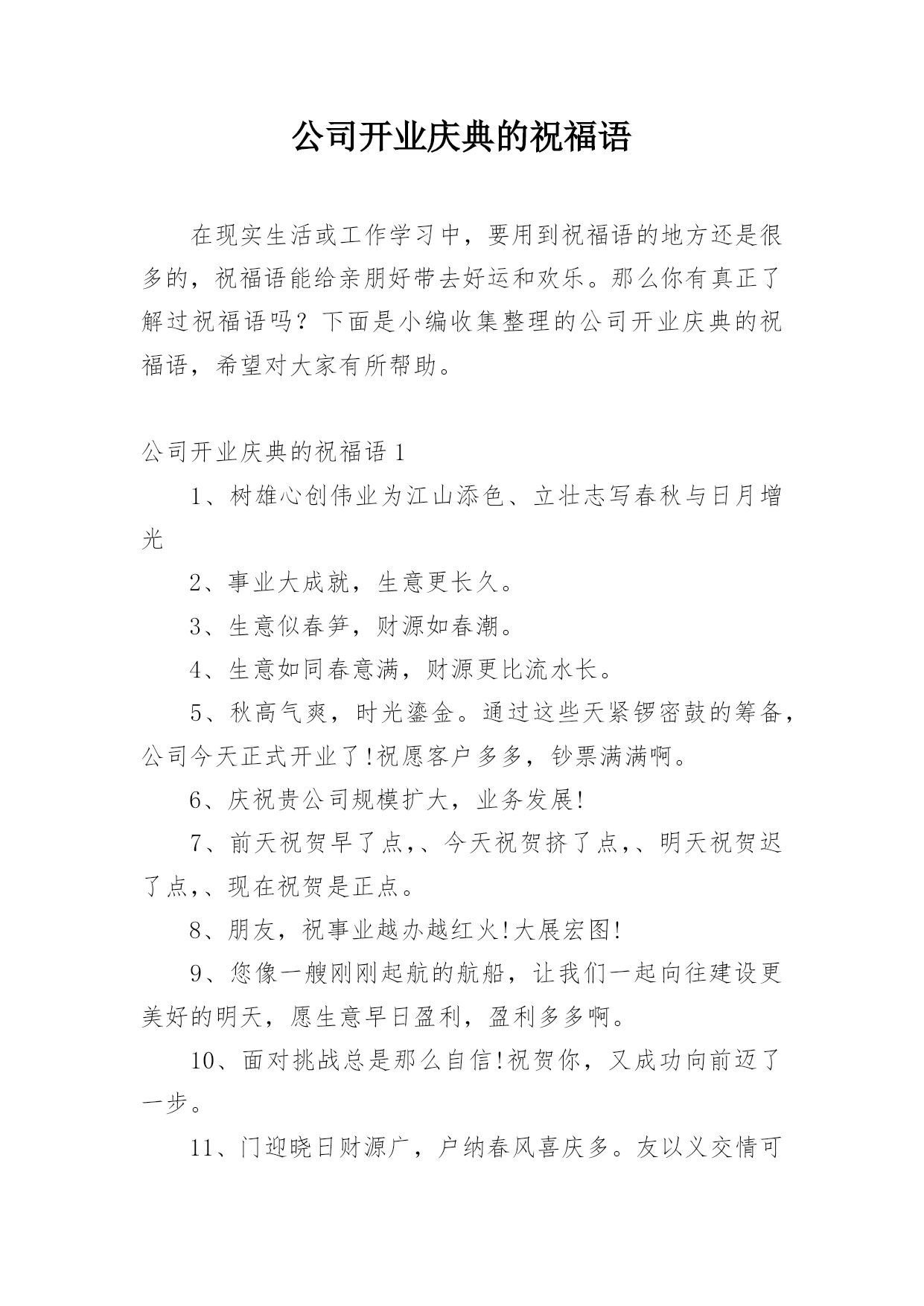 公司开业庆典祝福语 公司开业庆典祝福语诗词.docx