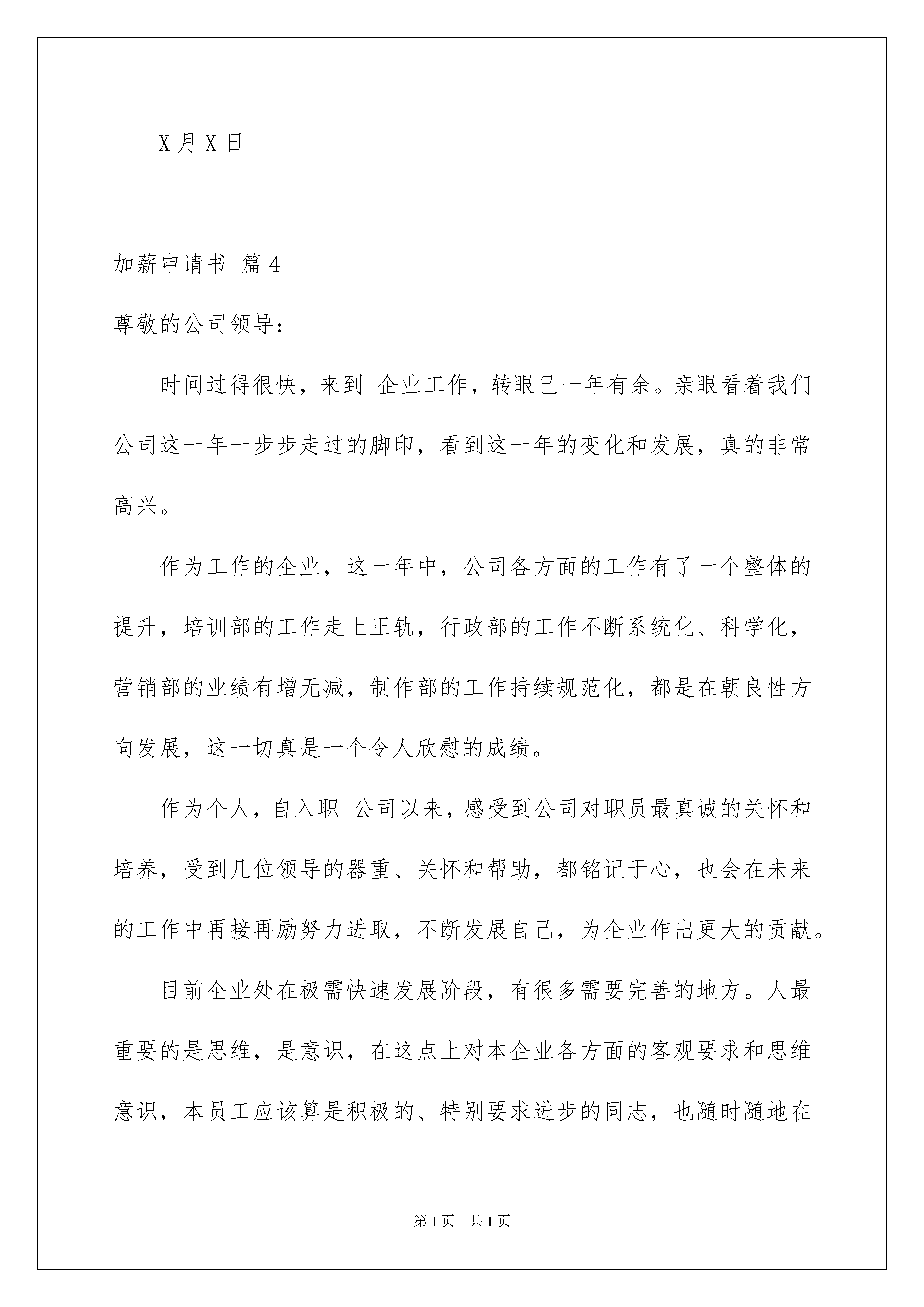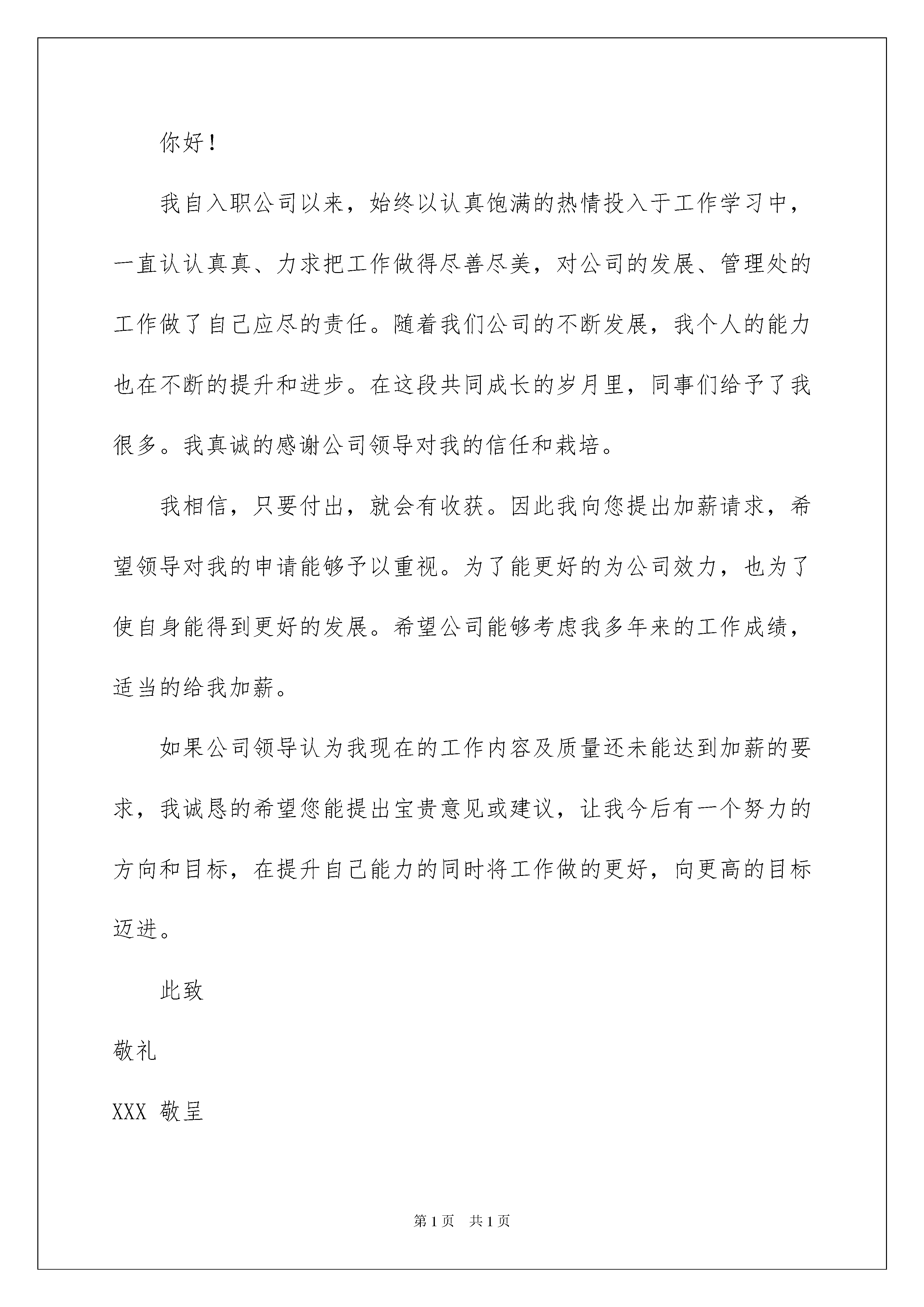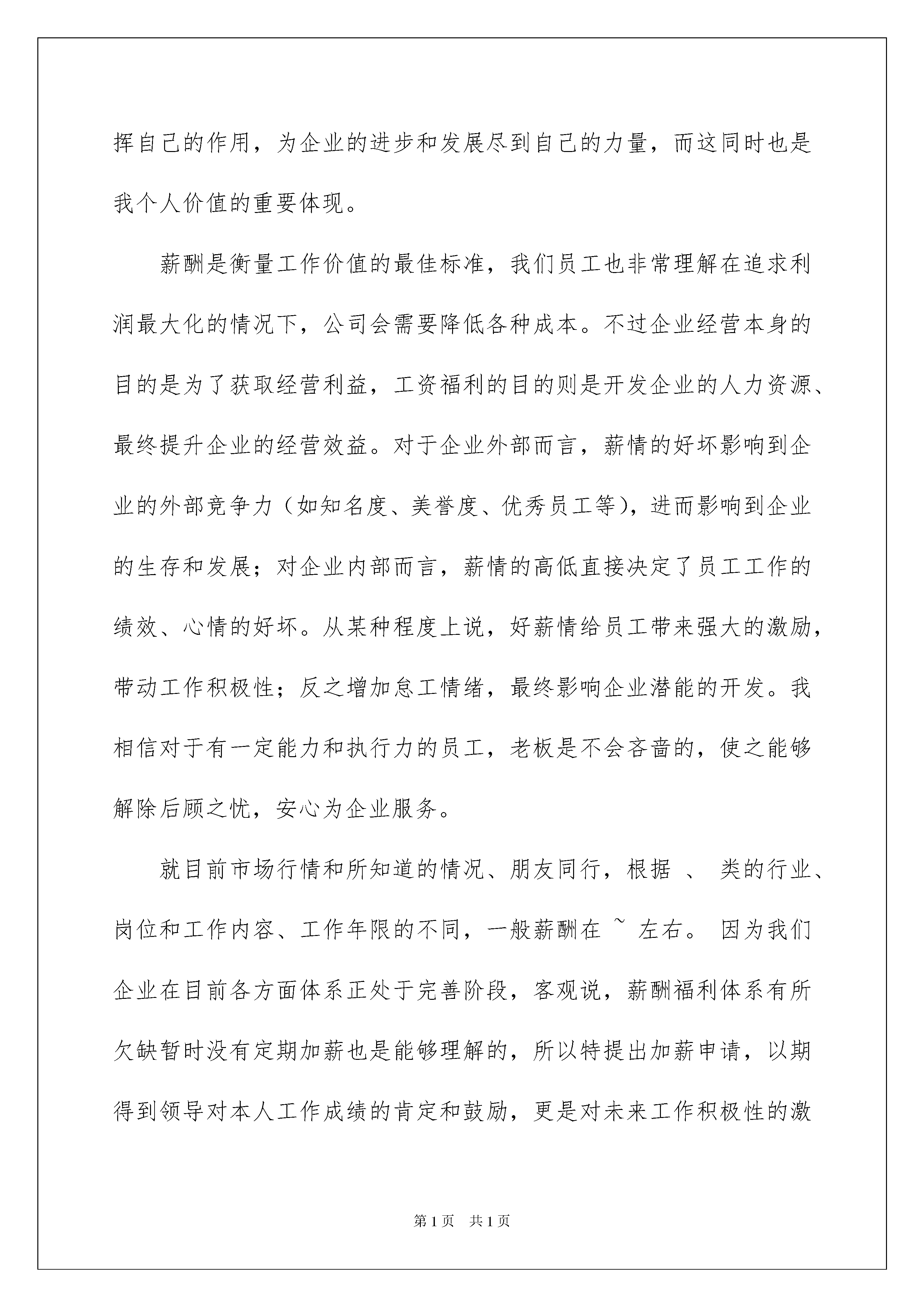 2022加薪申请书模板汇总六篇加薪申请书模板汇总六篇在当今社会高速发展的今天申请书应用范围广泛,写申请书的时候要注意内容的完整。什么样的申请书才是合理的呢?以下是我精心整理的加薪申请书6篇,供大家参考借鉴,希望可以帮助到有需要的朋友。加薪申请书篇1尊敬的公司领导:首先感谢公司为我提供了施展个人能力的平台和空间,并同时向你们长期以来在工作和生活上对我孜
